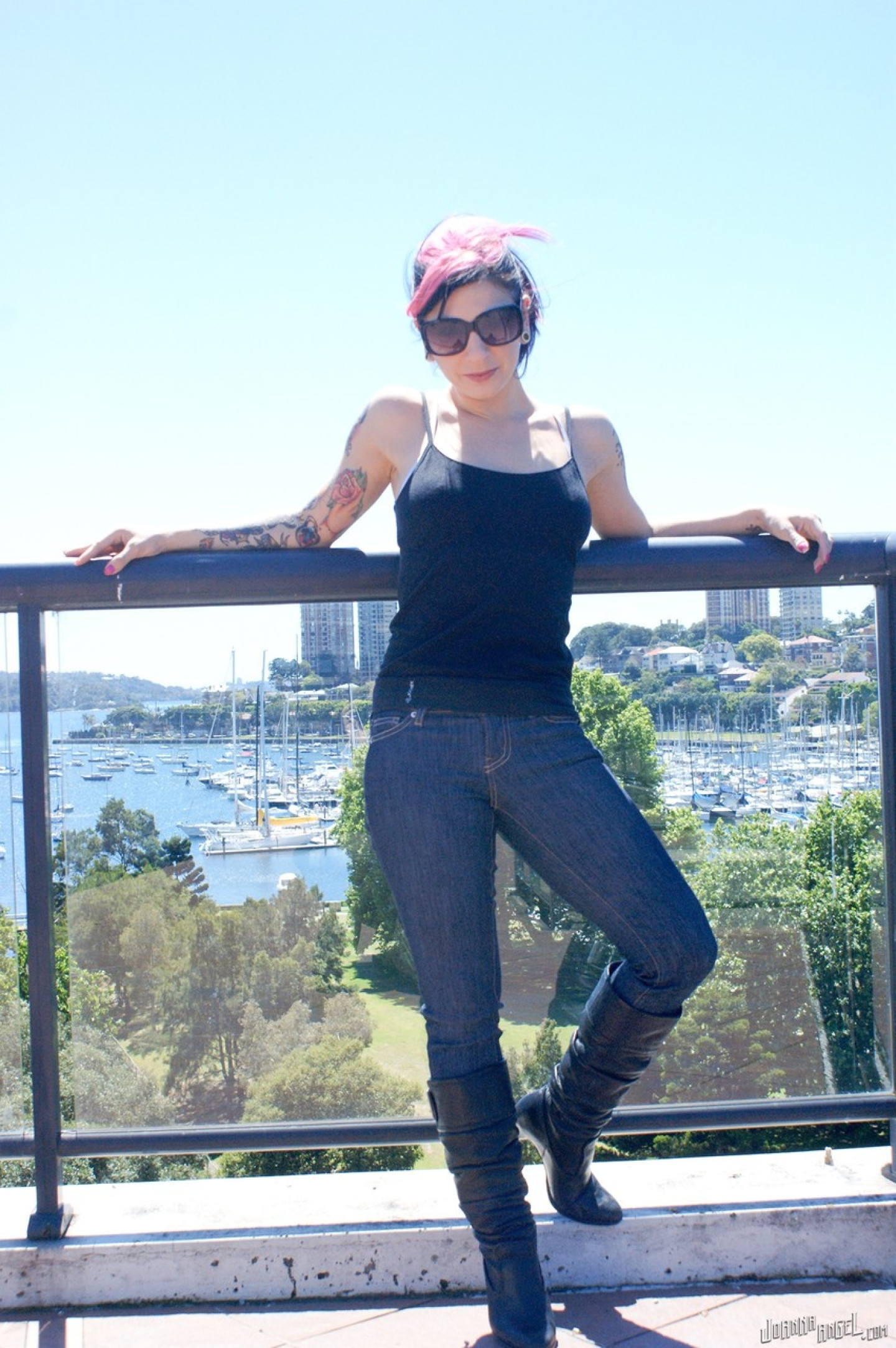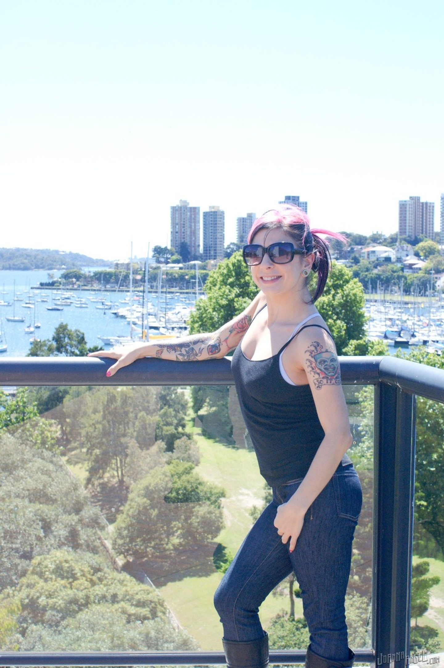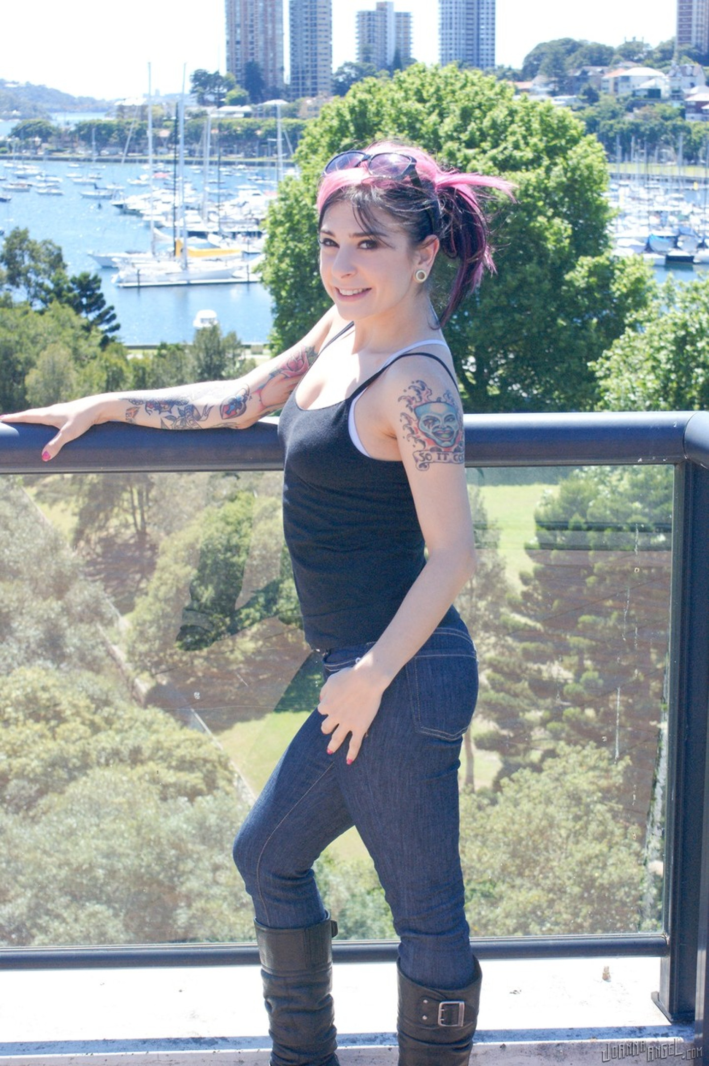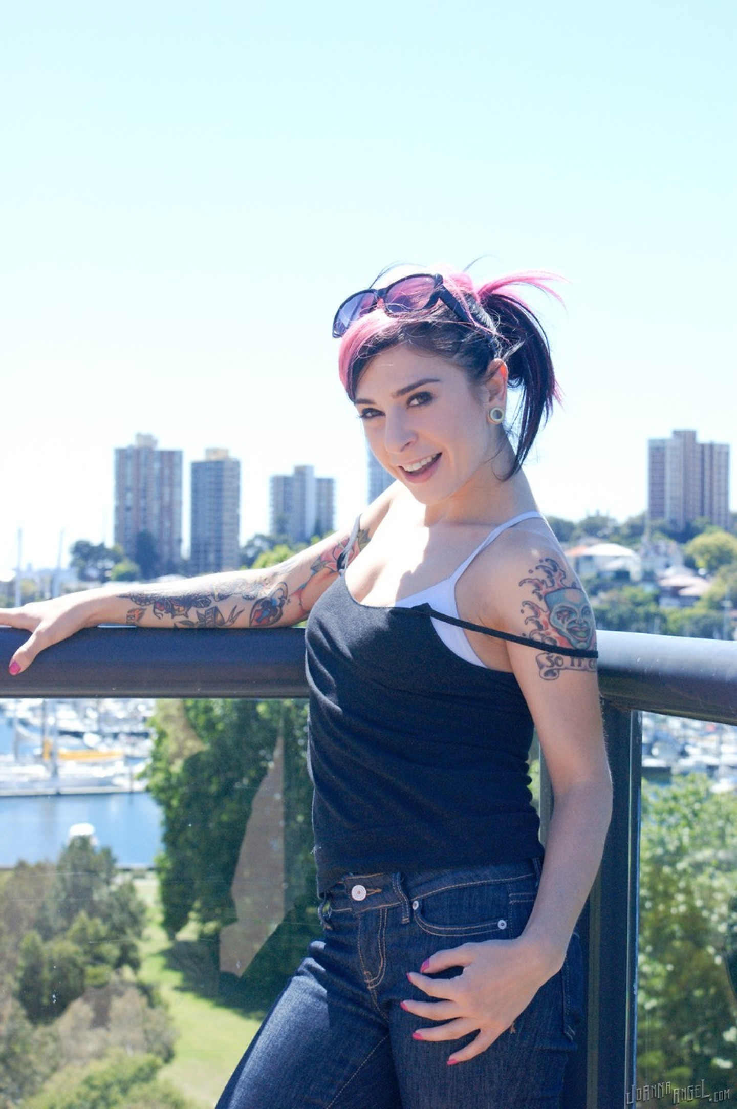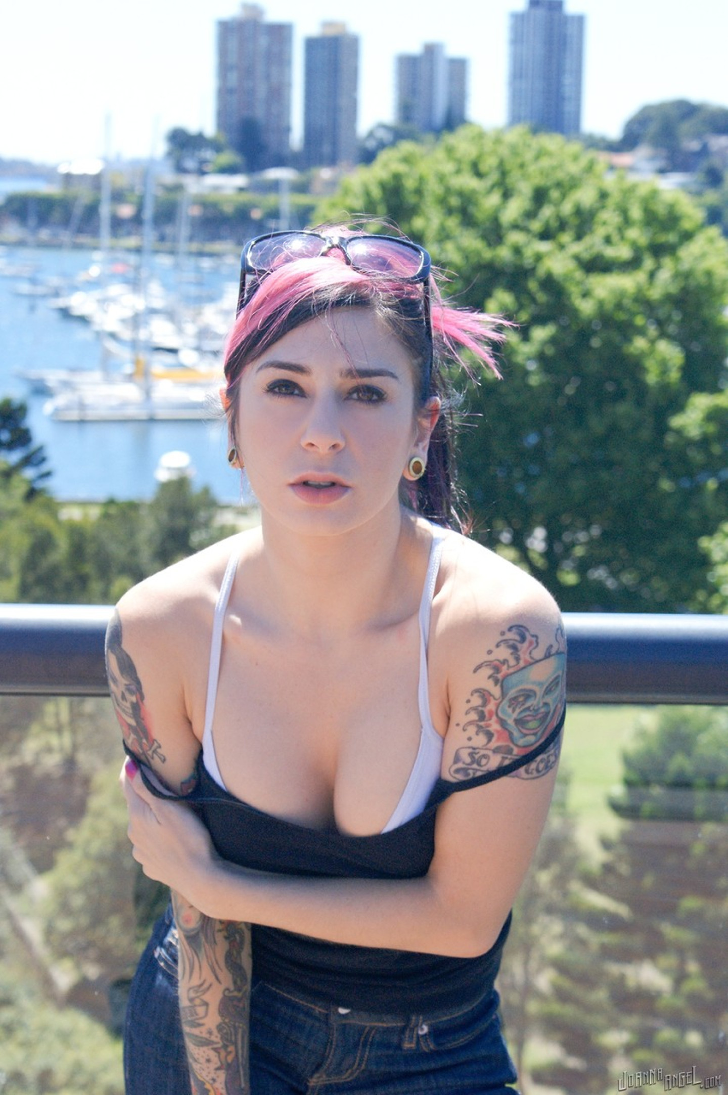 Inked teen likes flashing the tits in the sun and acting horny