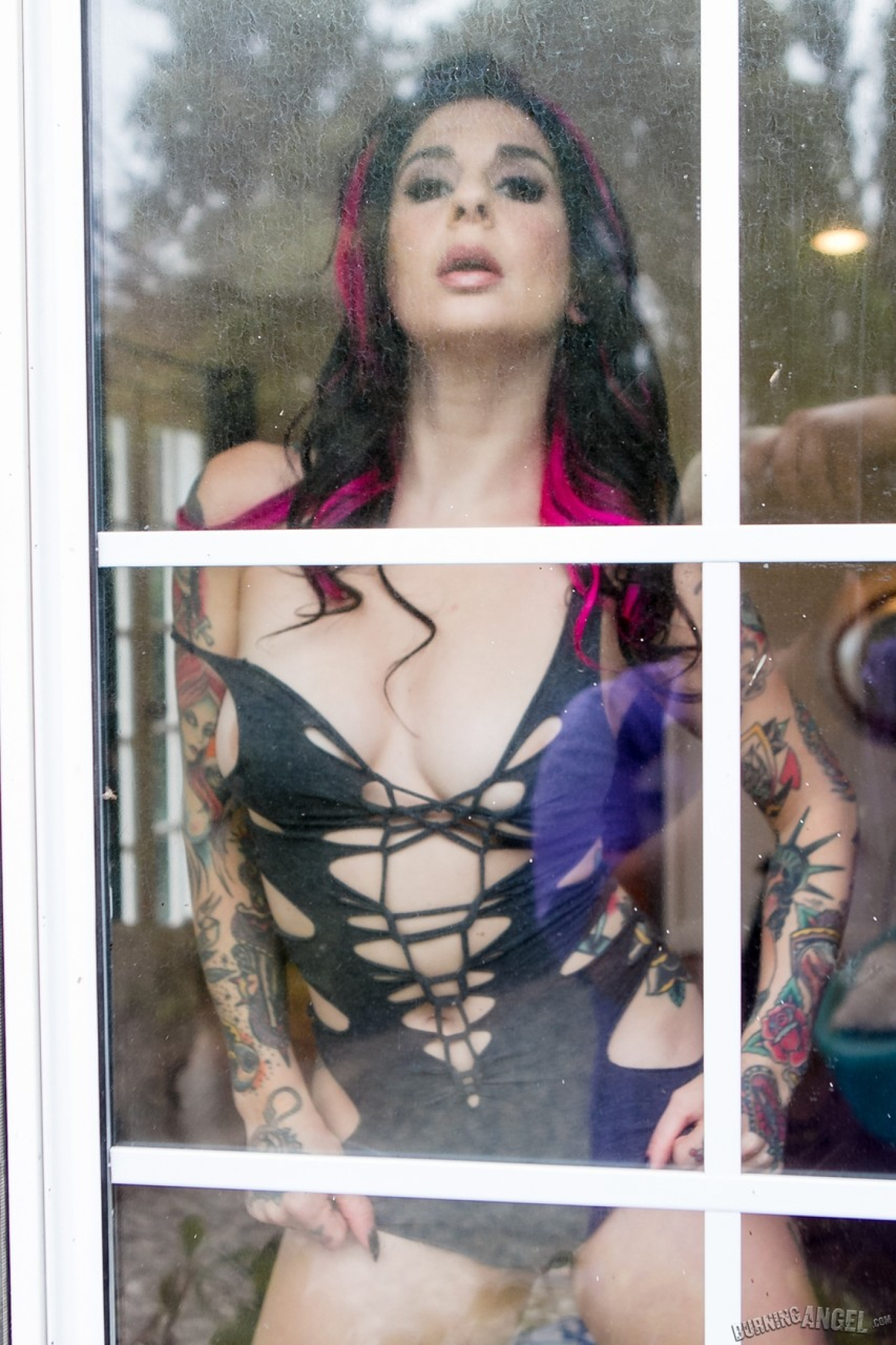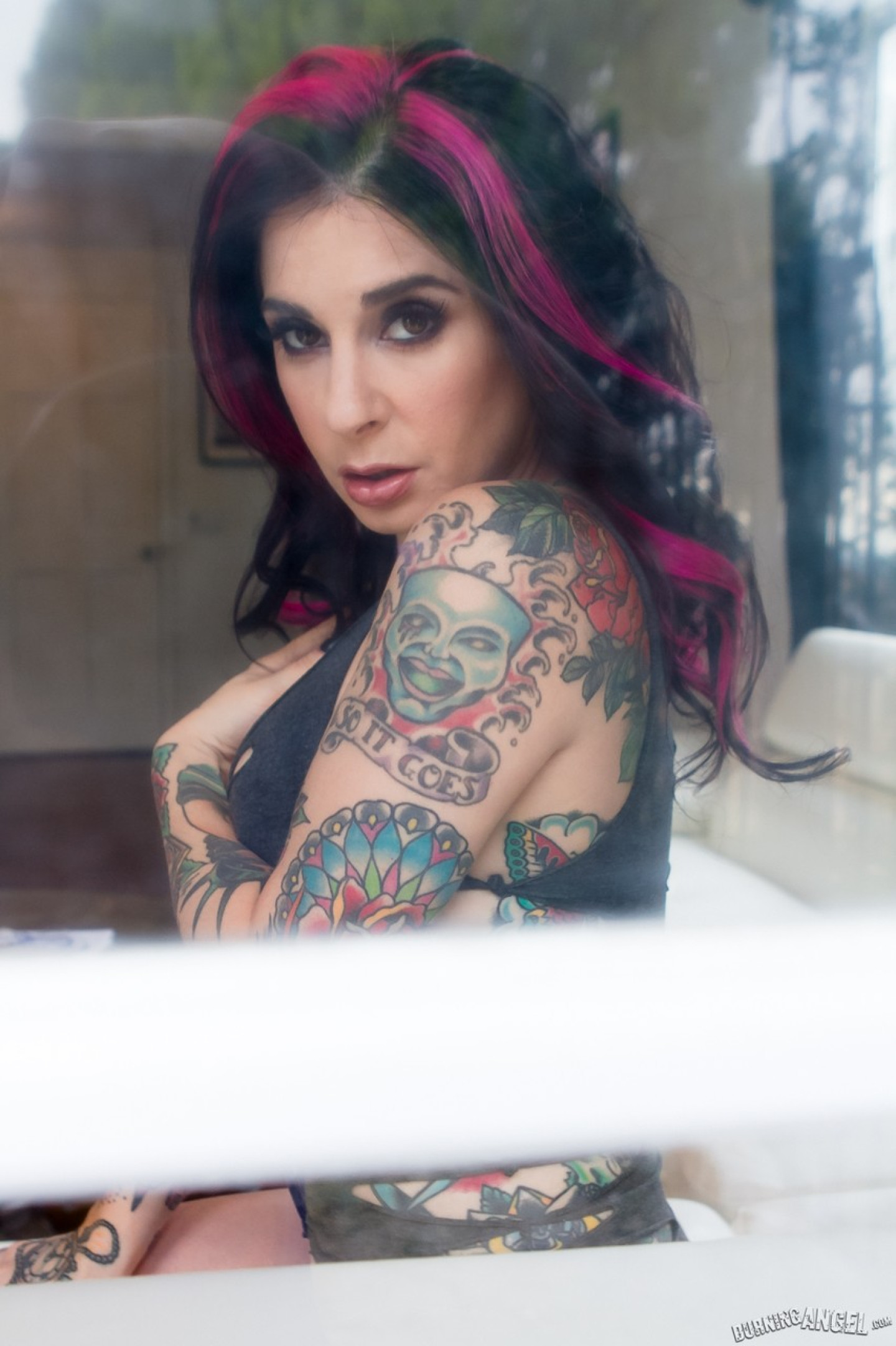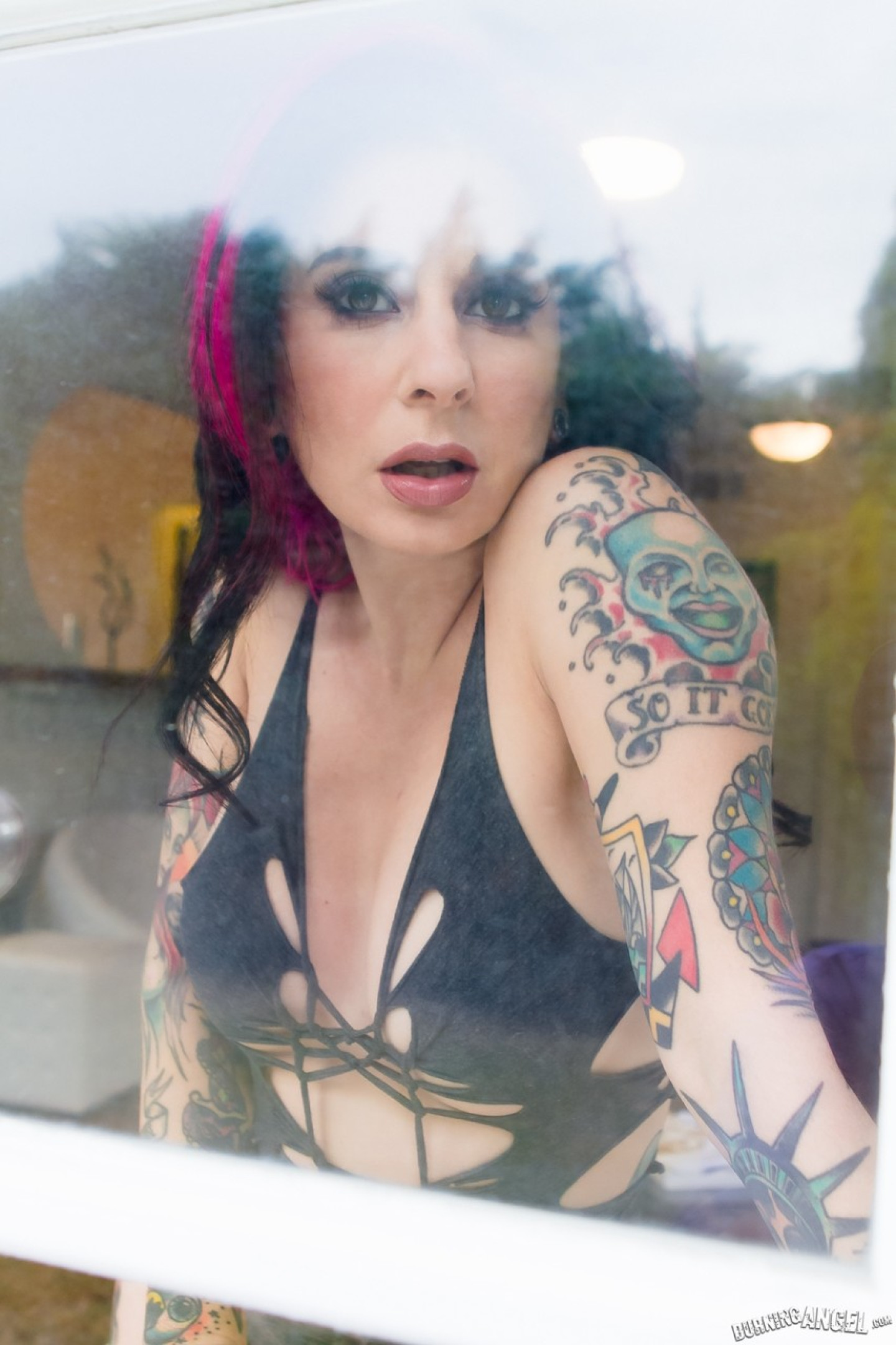Ink queen Joanna Angel gets naked in front of her bedroom window