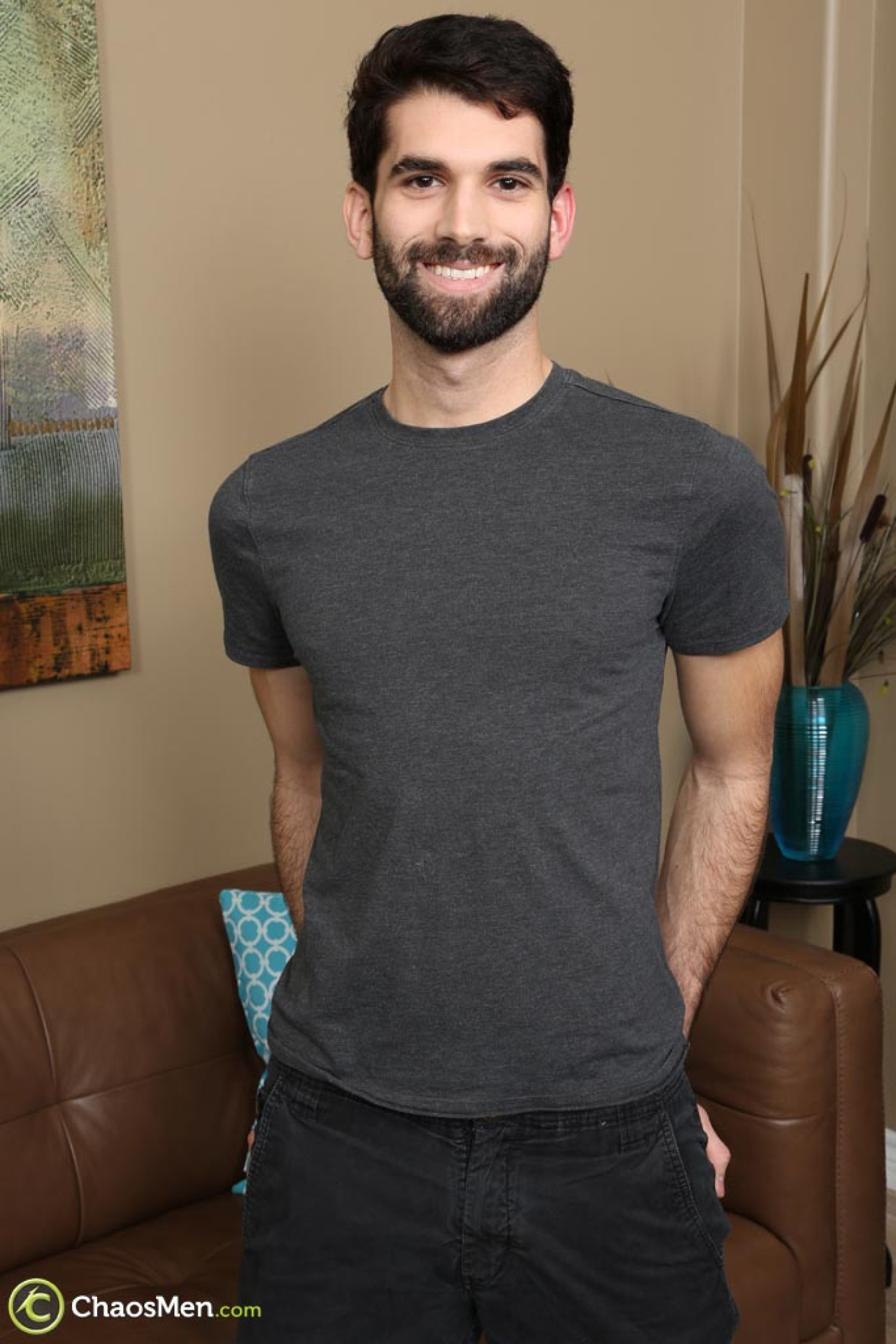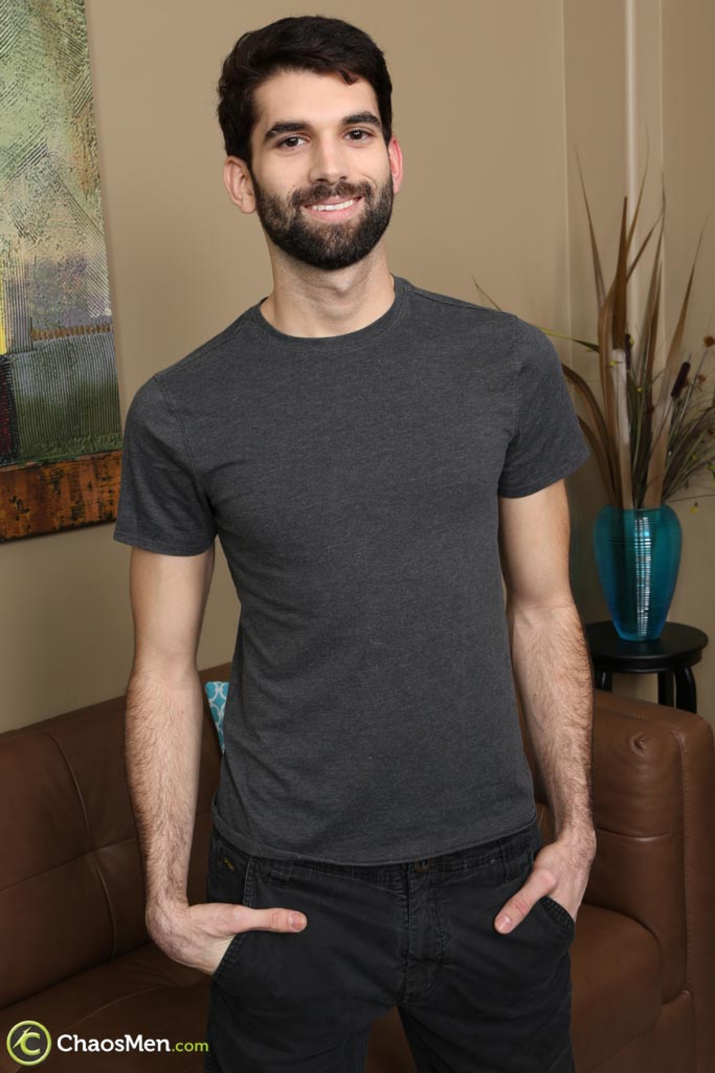 Bearded gay brunette Tegan Zayne unveils his big dick & flaunts his hairy ass