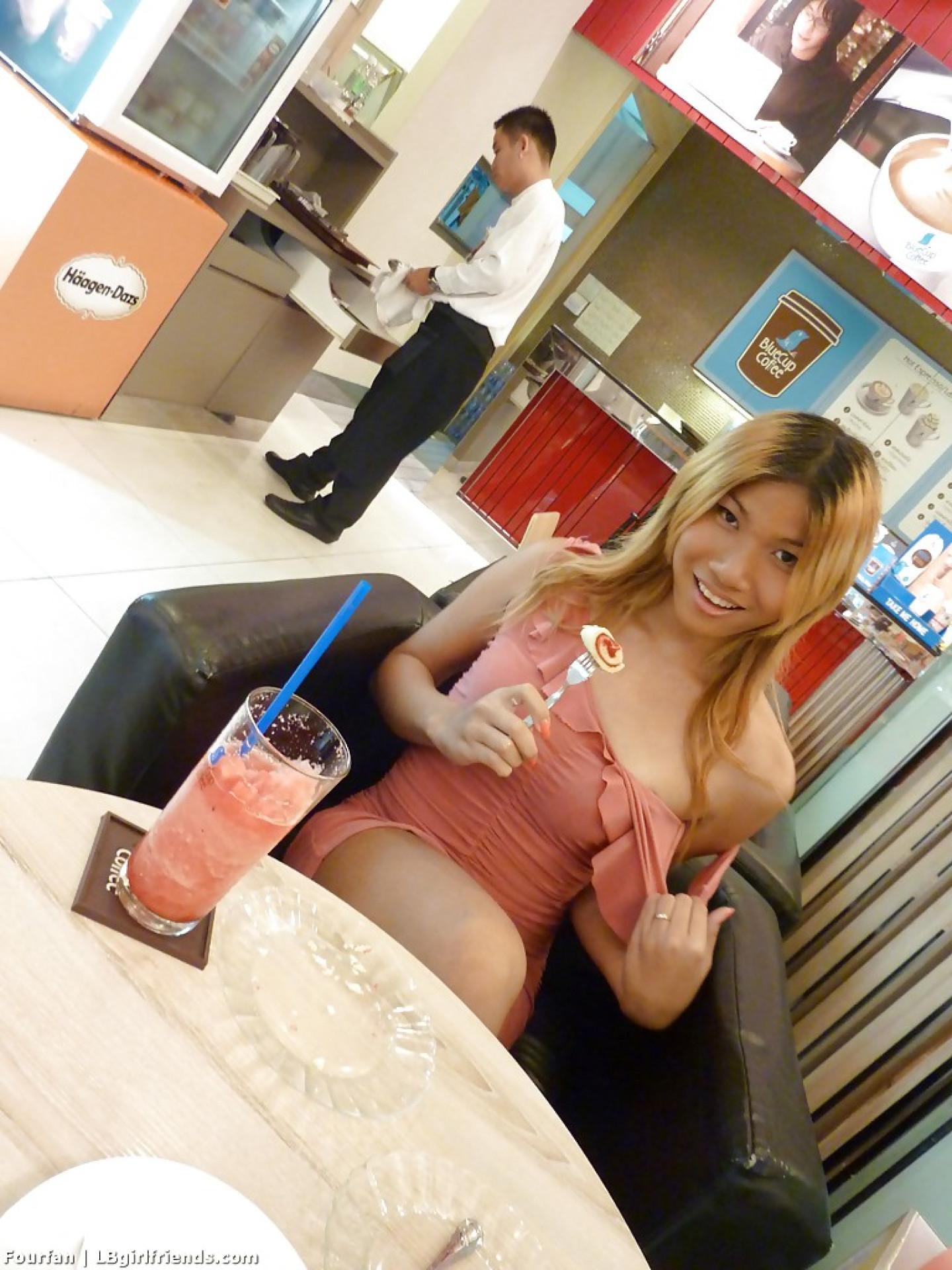 Innocent Thai ladyboy Fourfan shows off hairy tranny dick in bathroom
