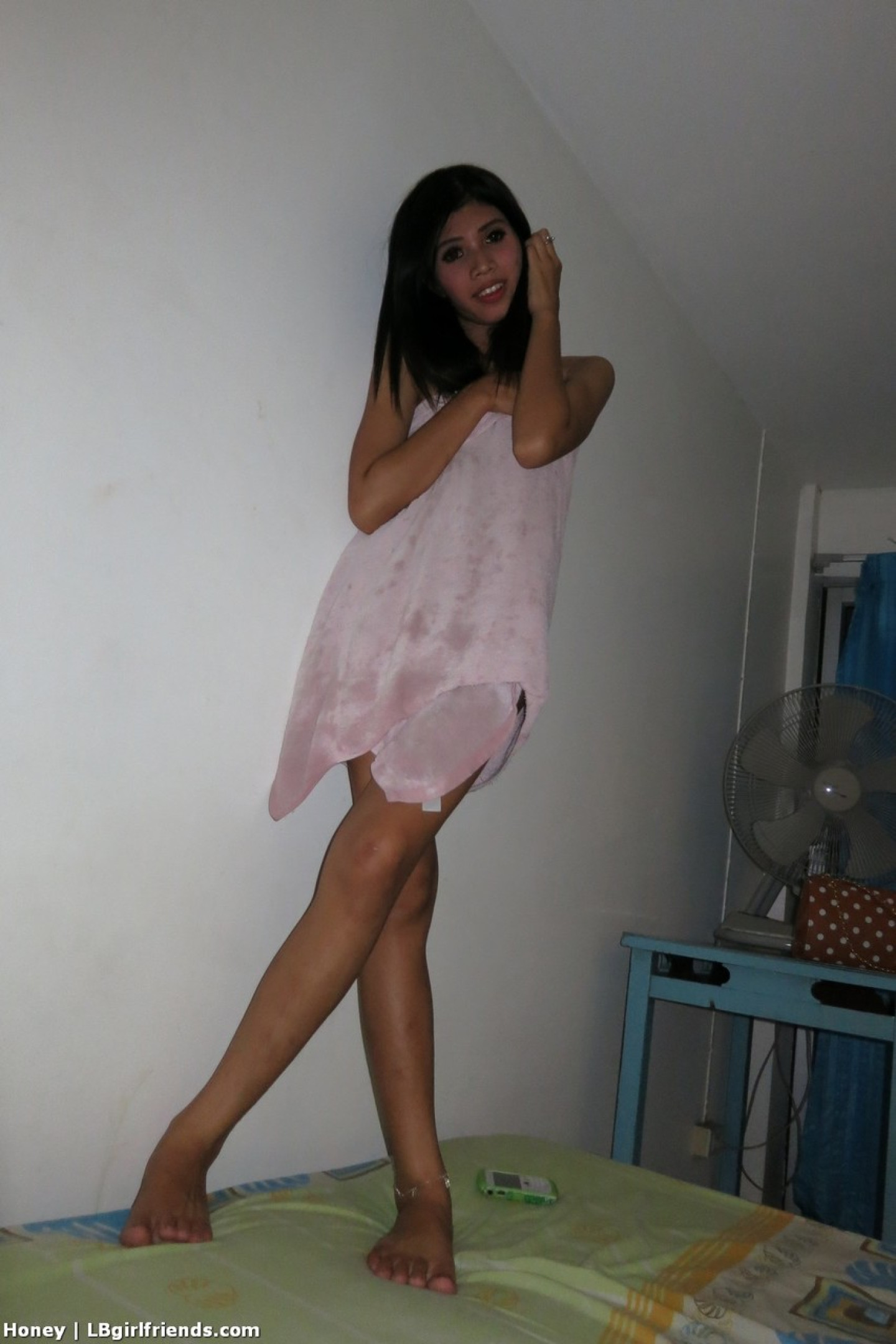 Big eyed Asian femboy Honey shows closeup uncut cock & has steamy POV ass bang