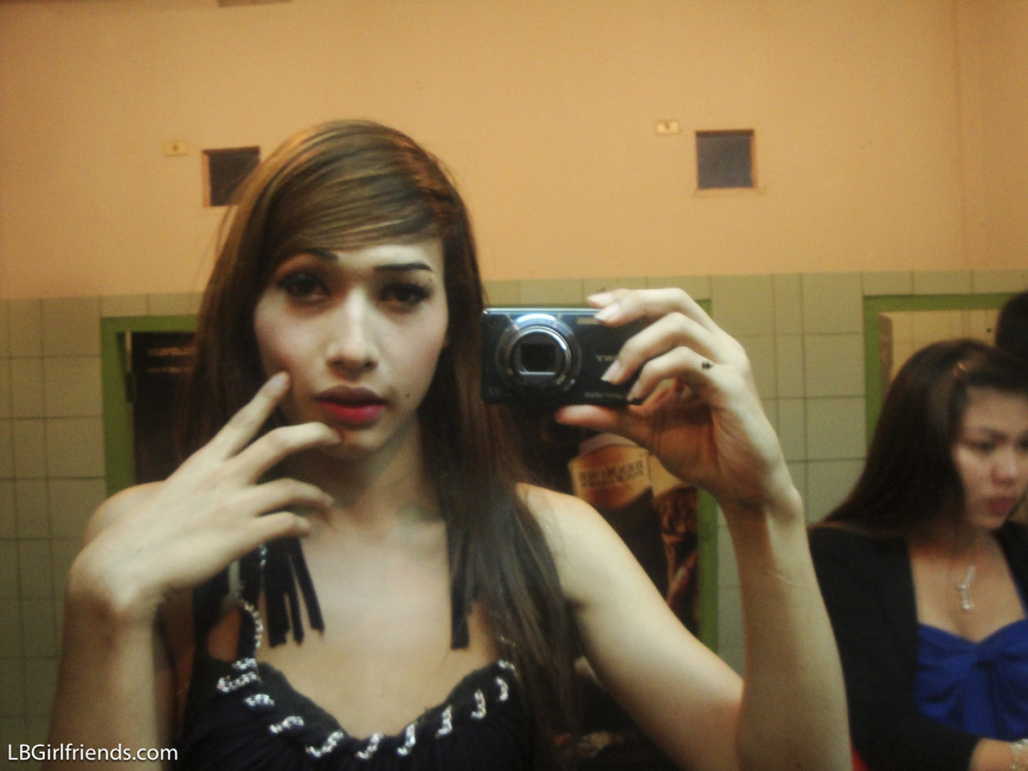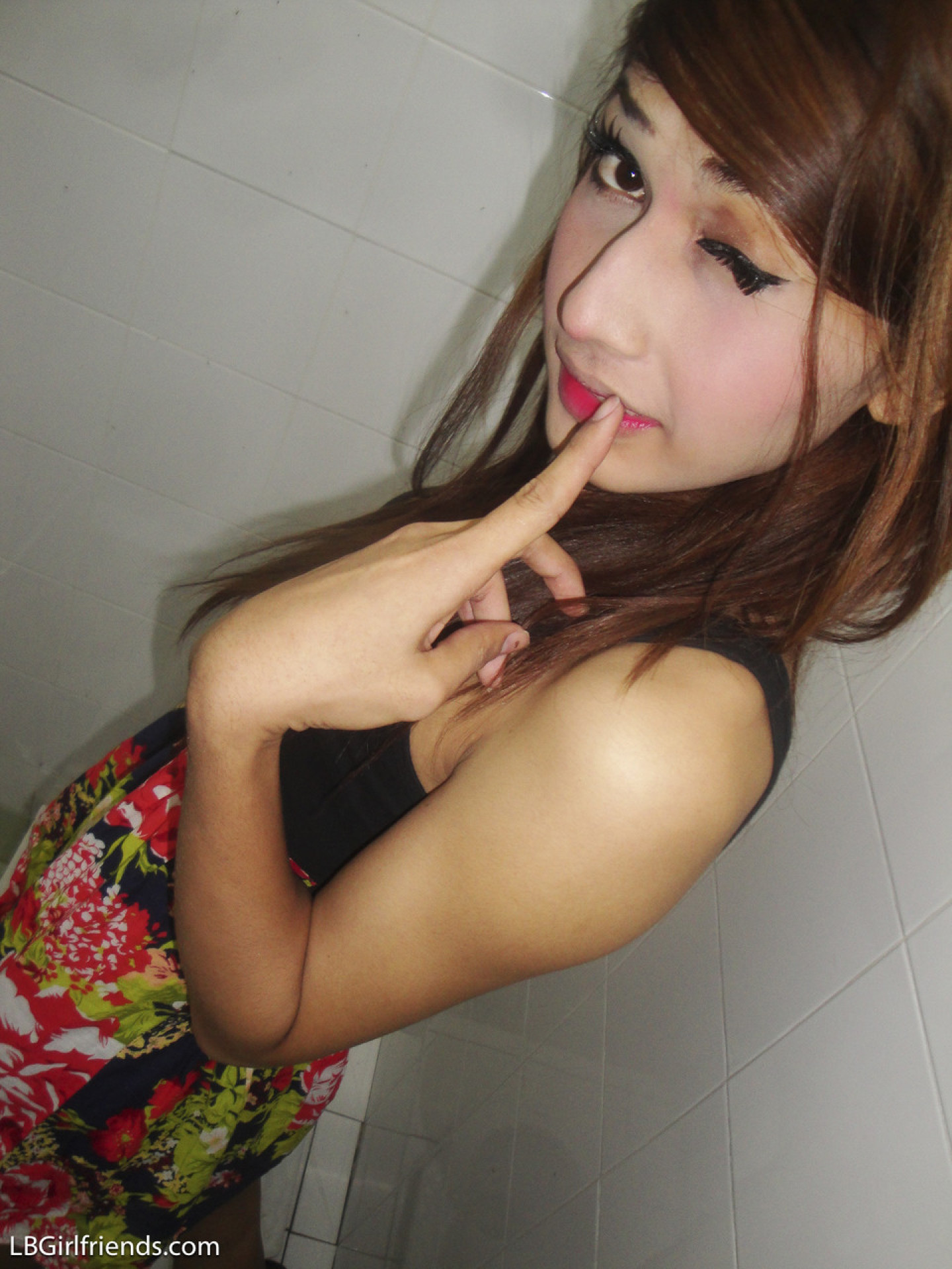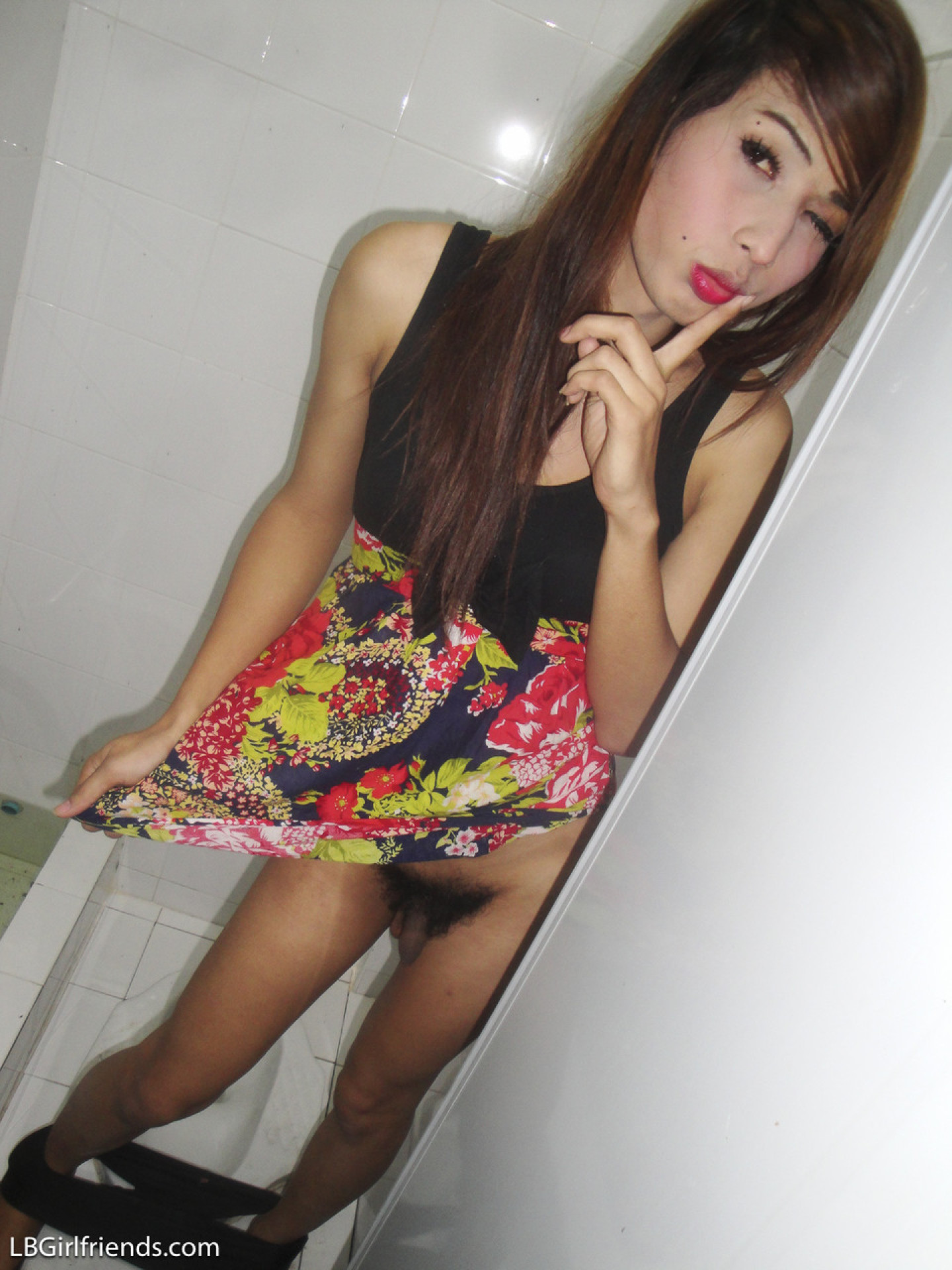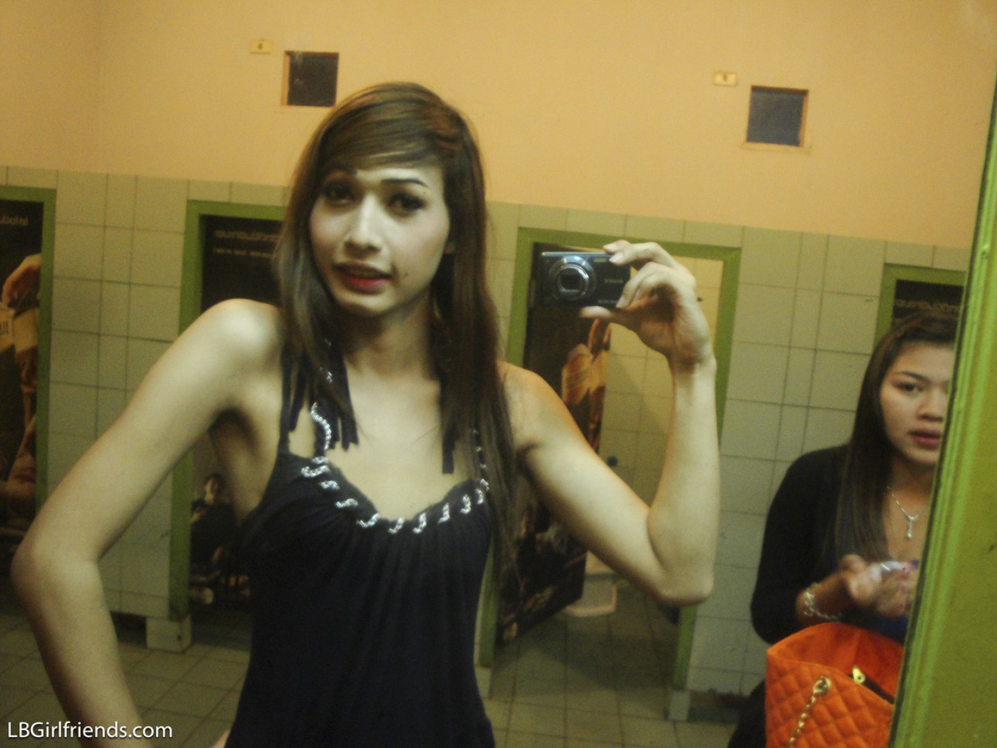 Pretty Thai ladyboy with skinny body shamelessly flashes nudes in toilet