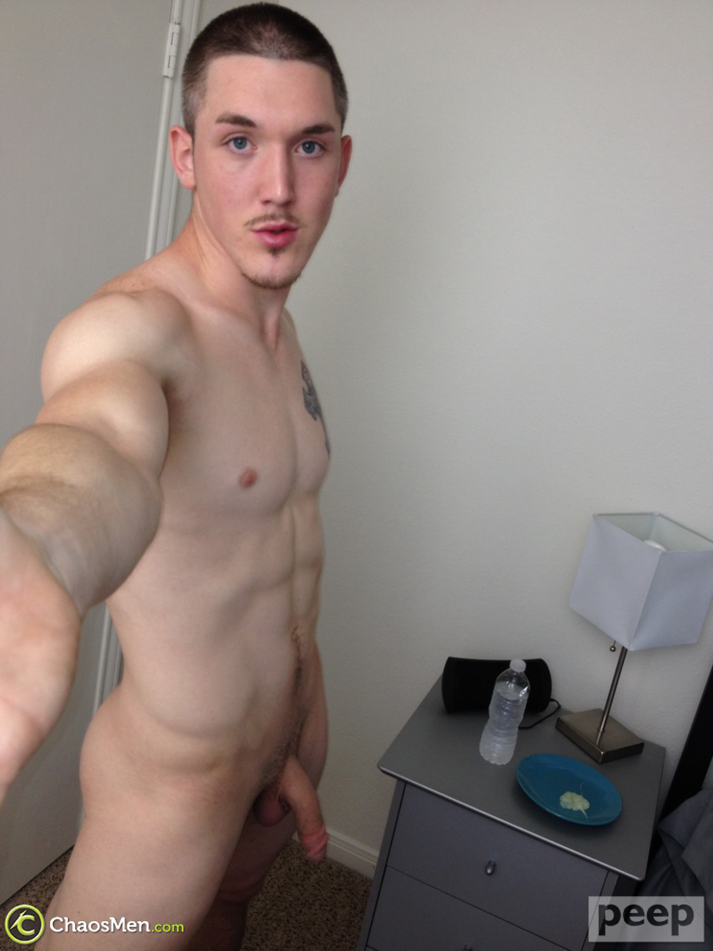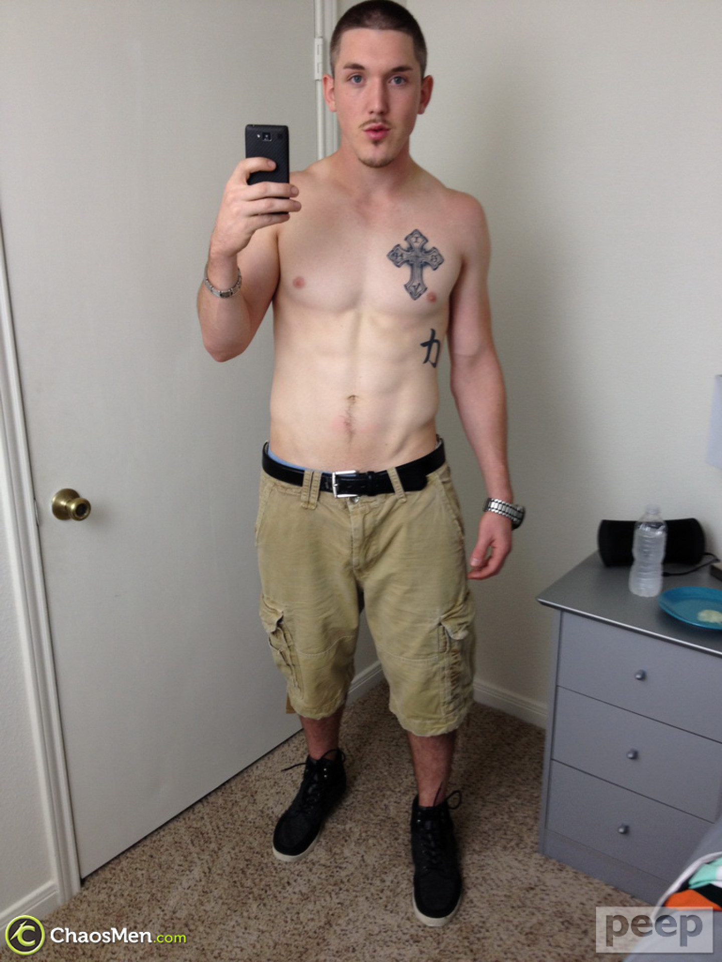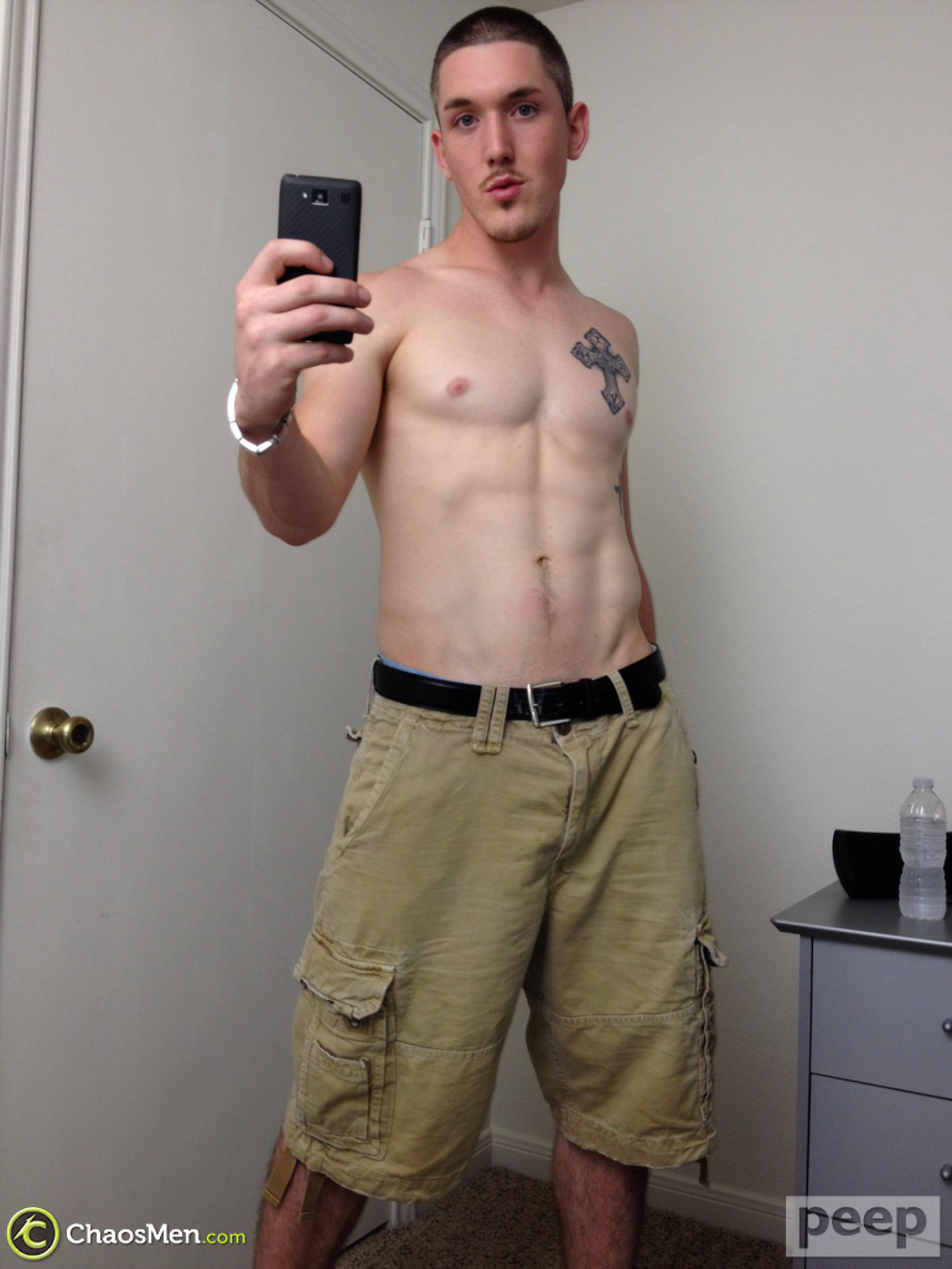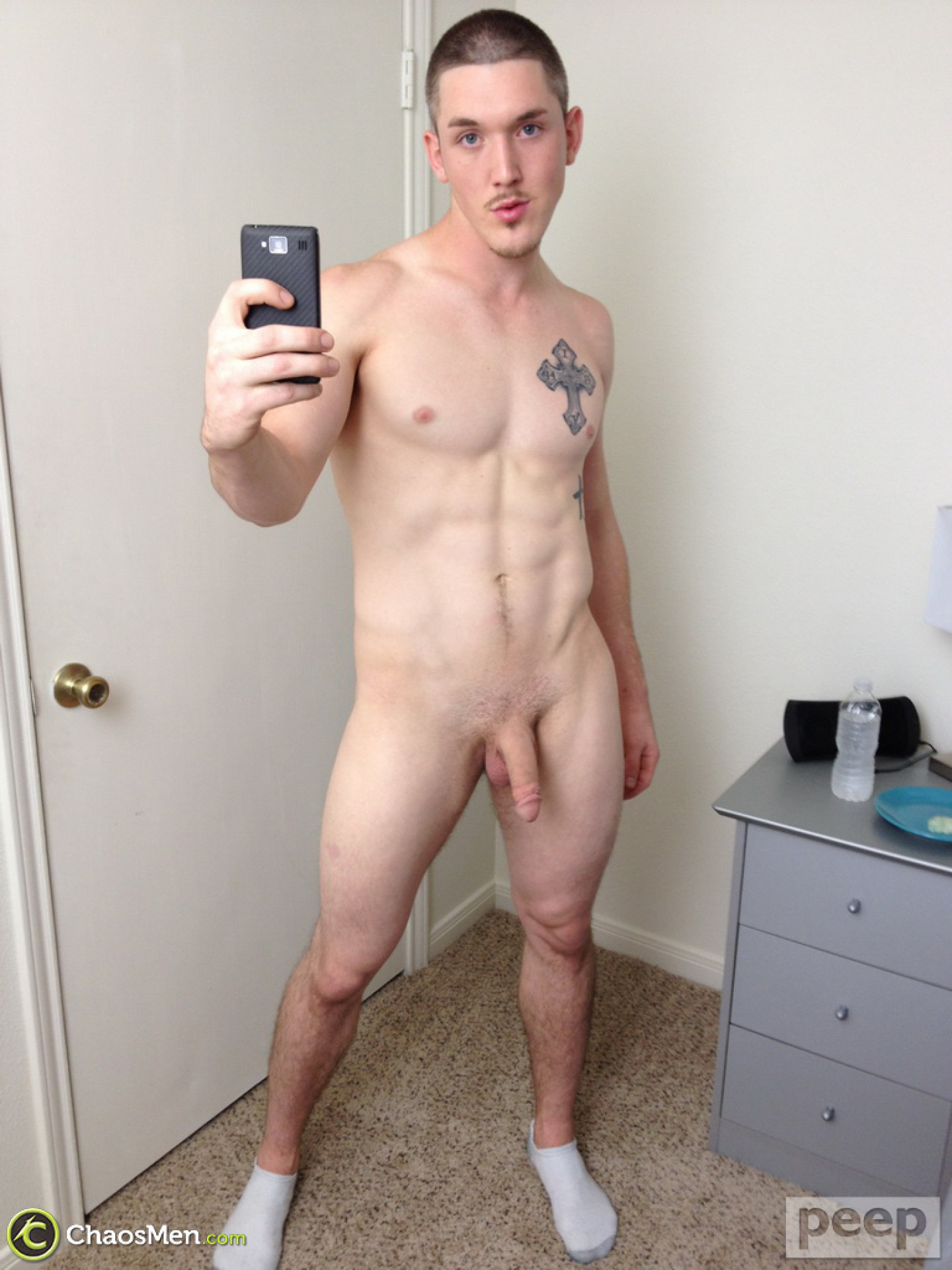 Hung gay cutie Justin Reid sheds his shorts & takes selfies of his big cock