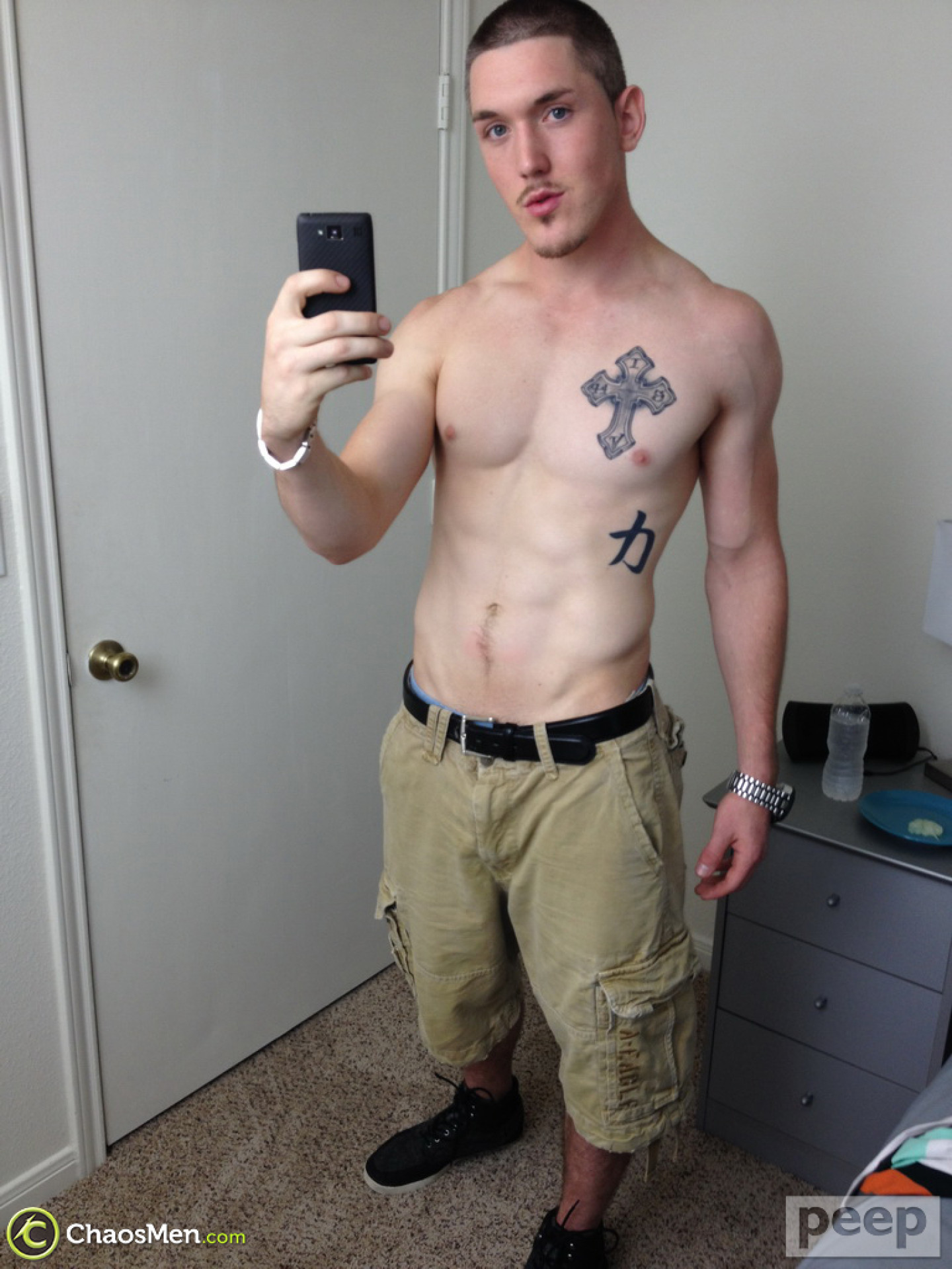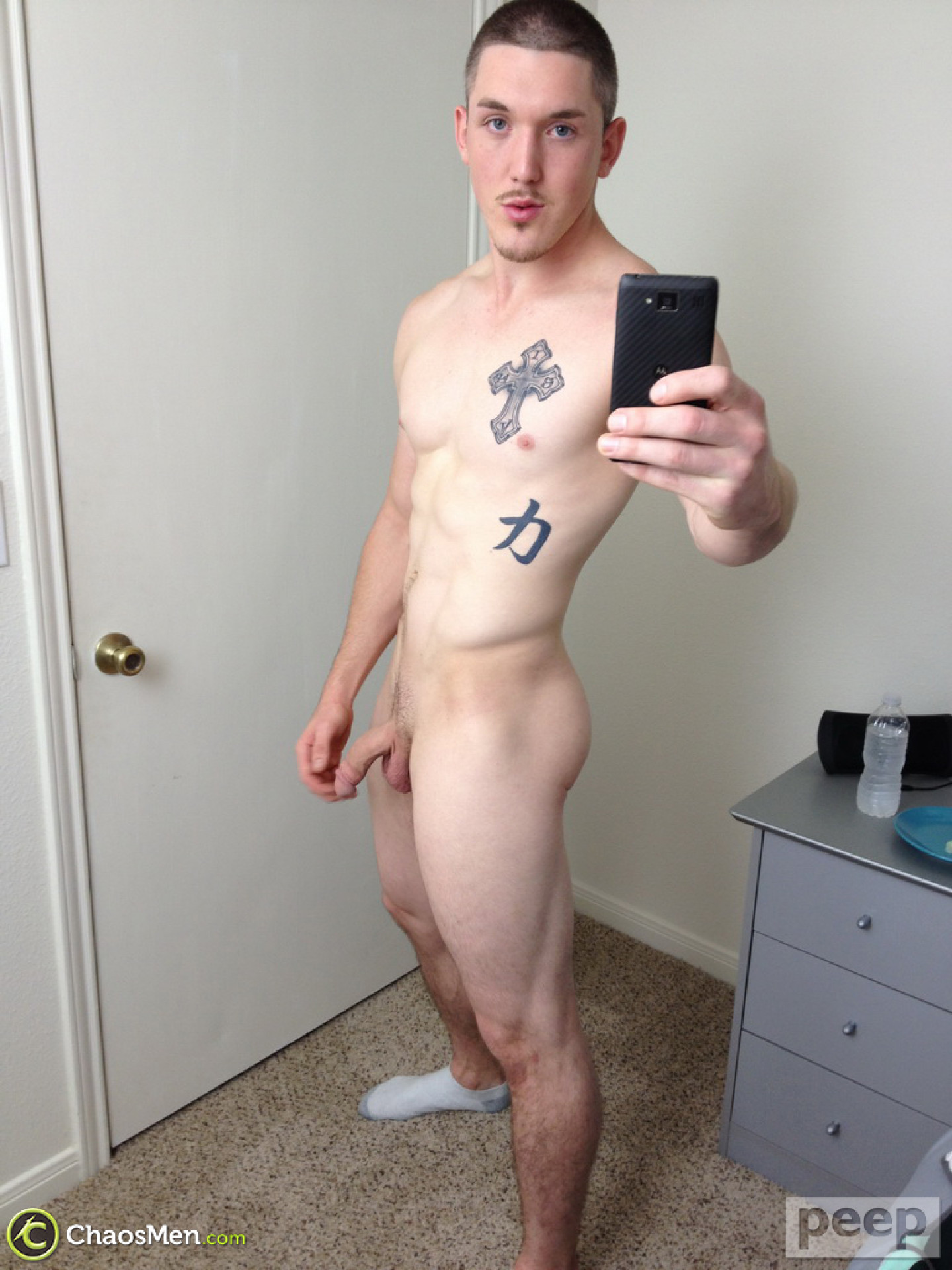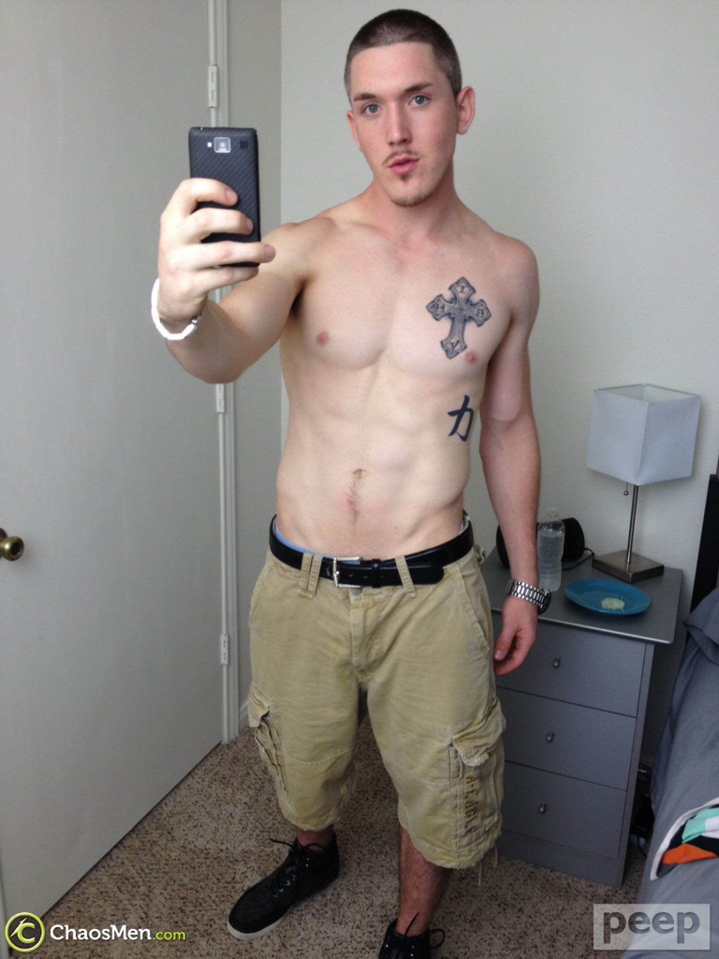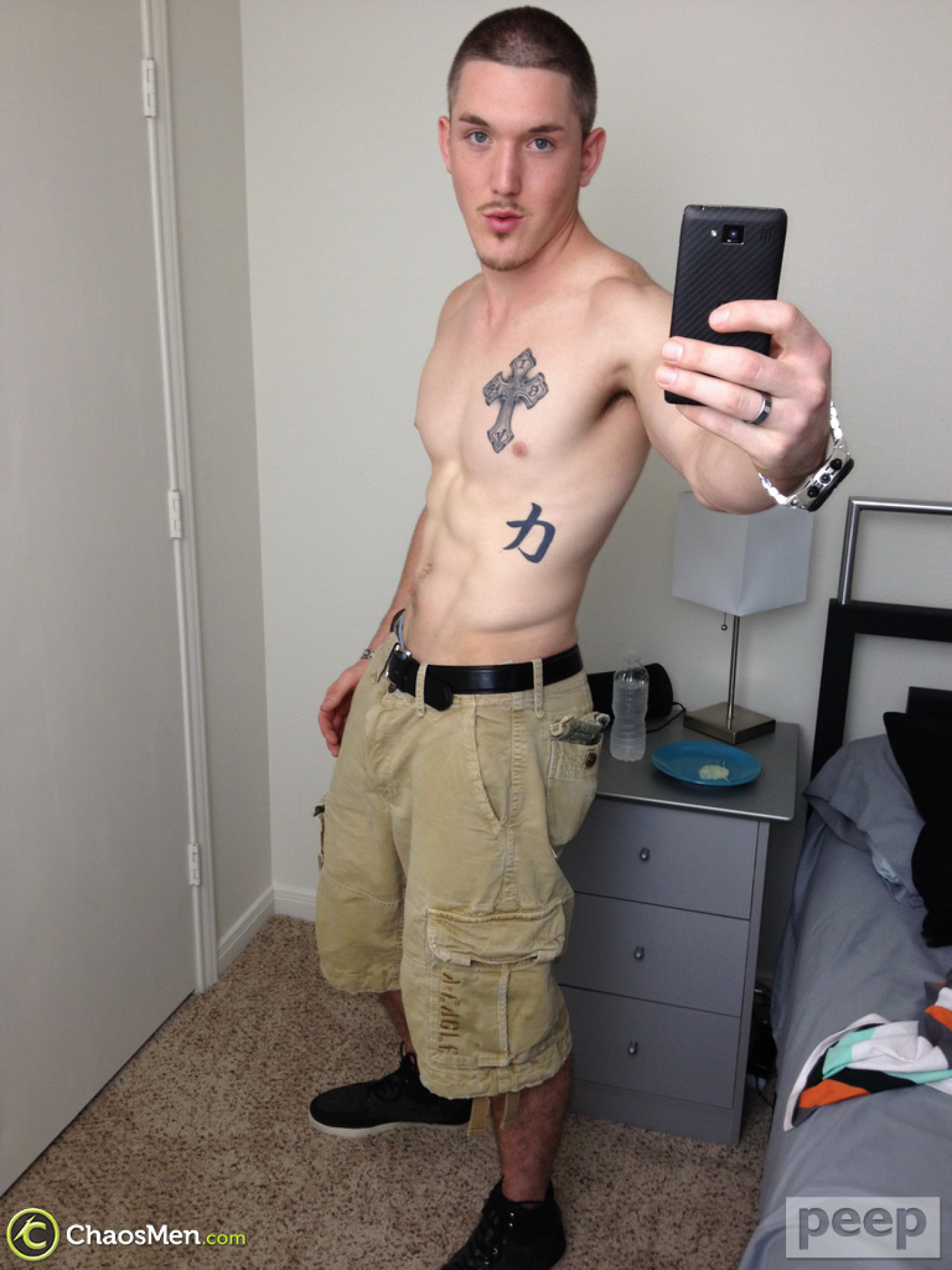 Hung gay cutie Justin Reid sheds his shorts & takes selfies of his big cock