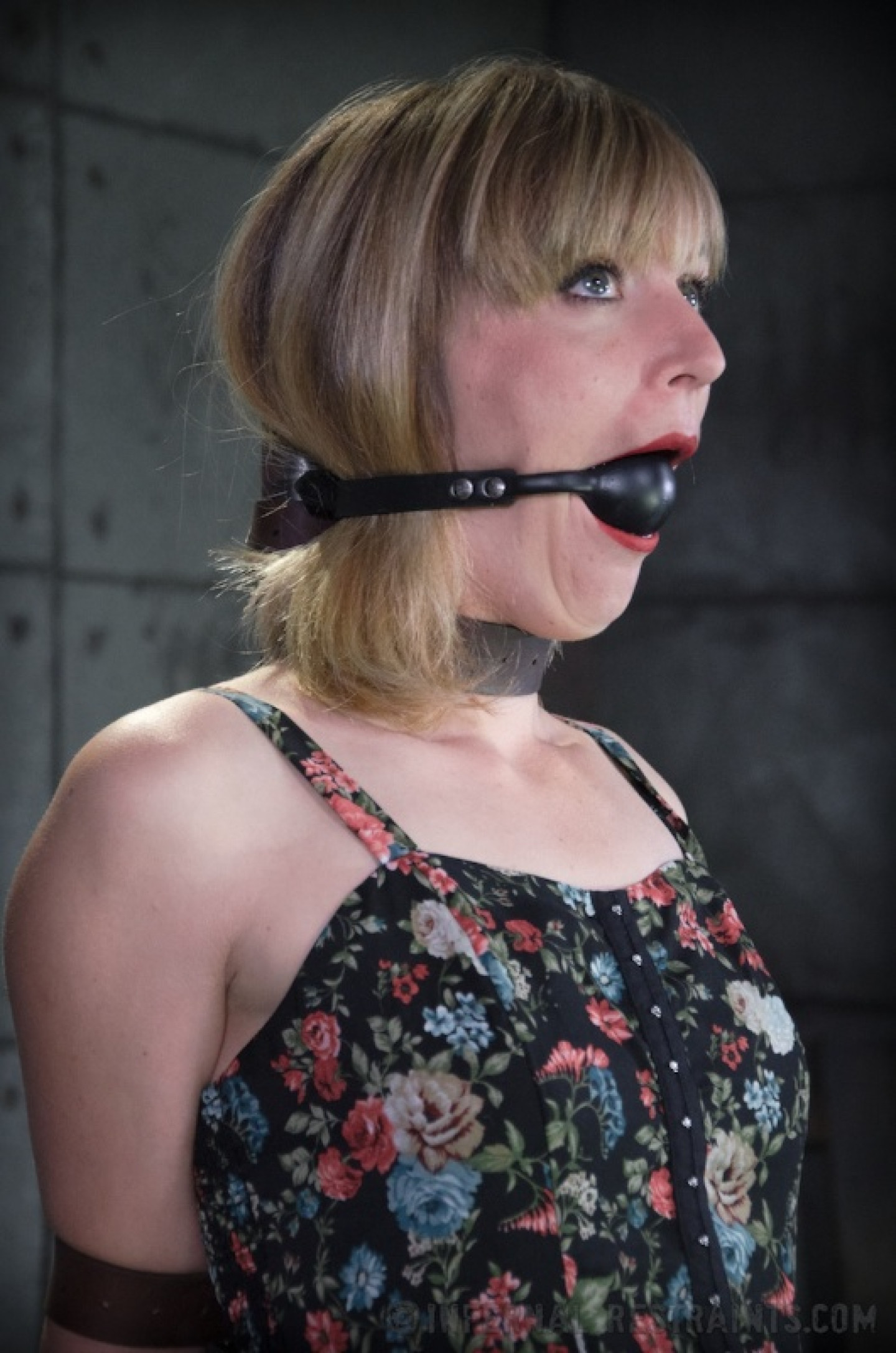 Clothed female Mona Wales finds herself being restrained in a dungeon