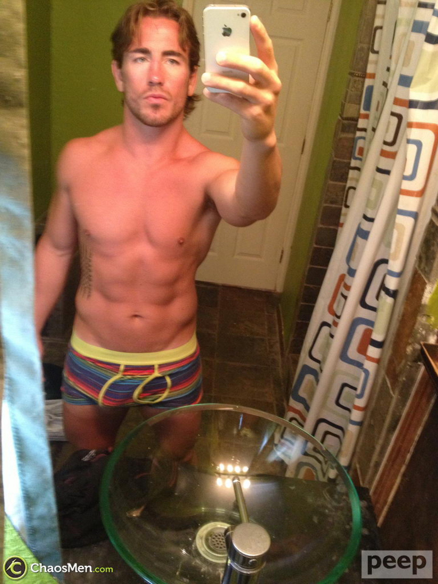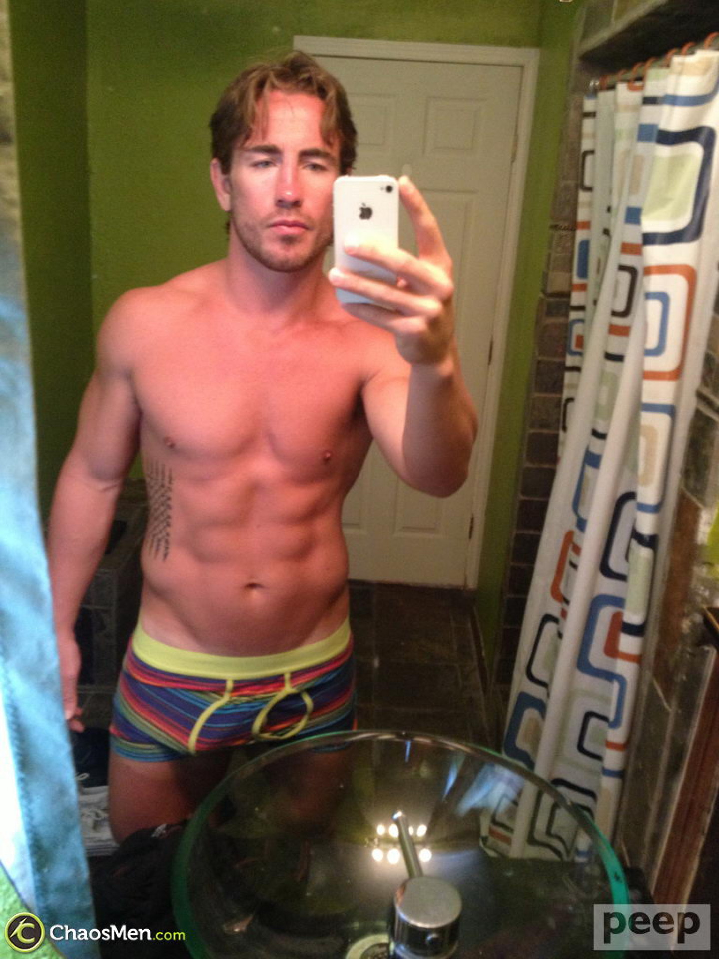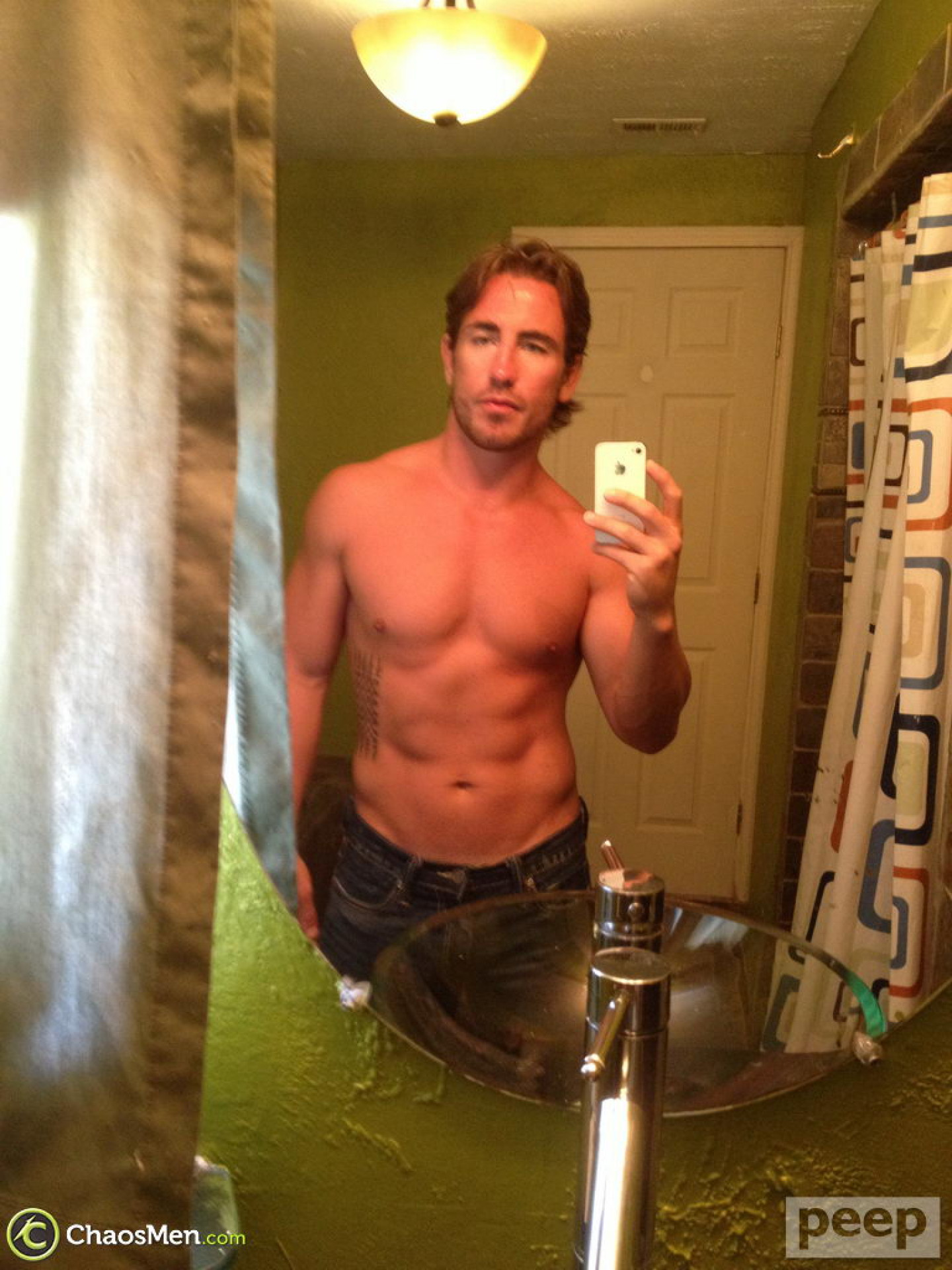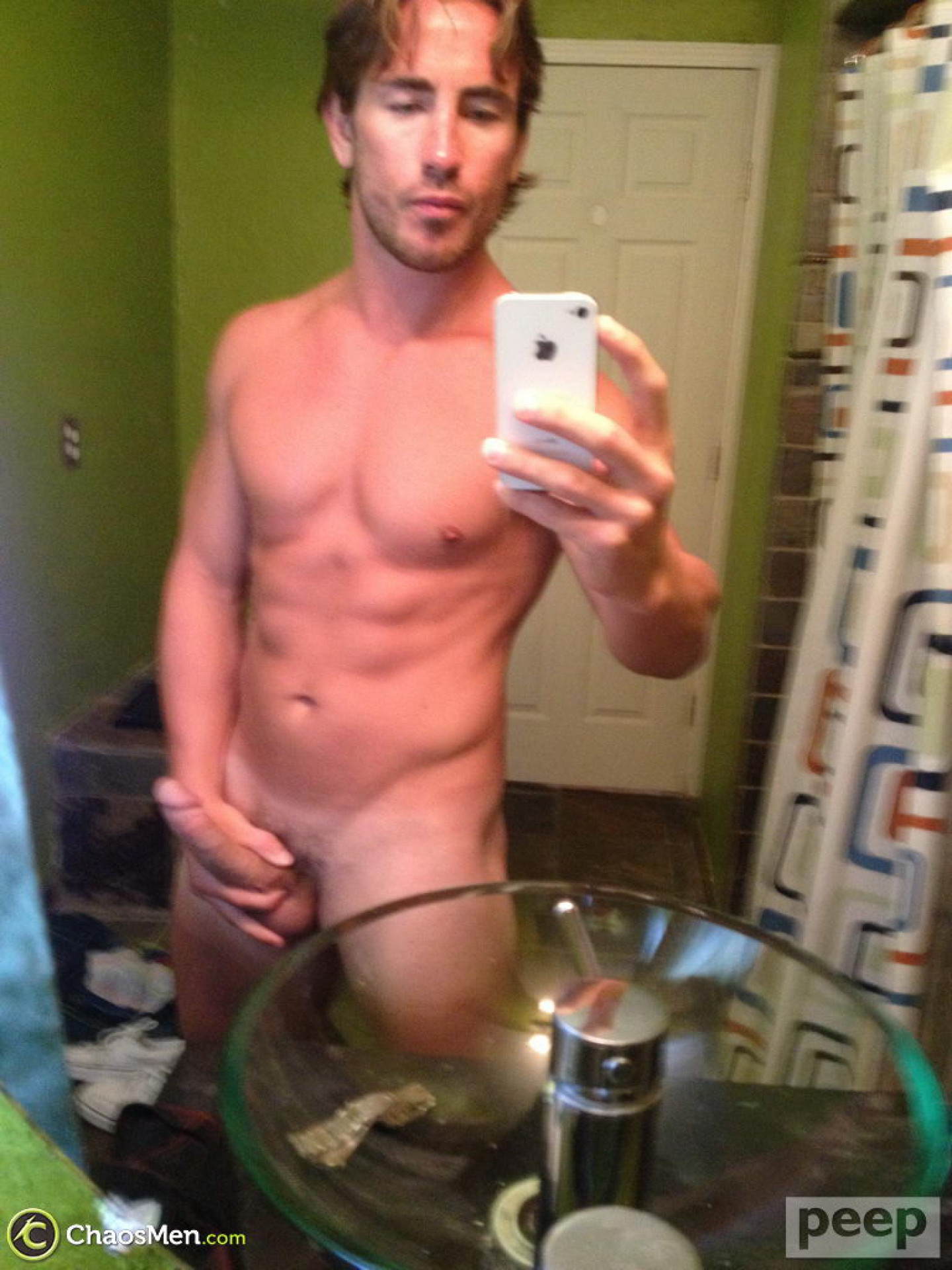 Handsome gay man Nick Louis takes selfies of his hot body & big dick