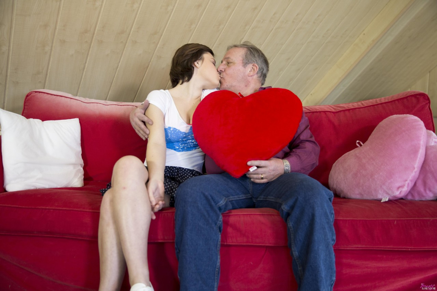 Young brunette teen gets hardcore with oldman doggystyle bang and cum on face