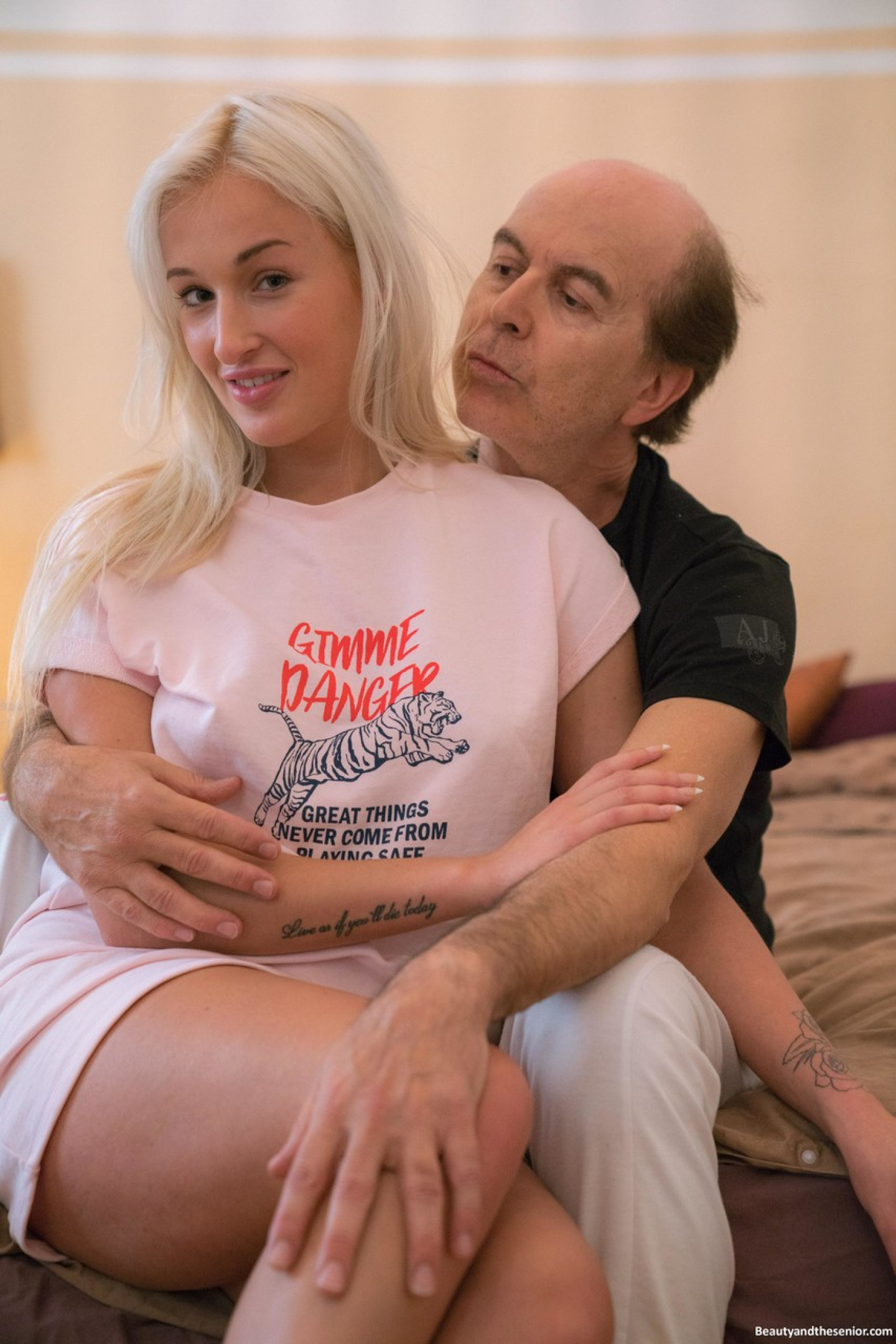 Golden haired Daisy Lee gets her feet licked during sex with an old man