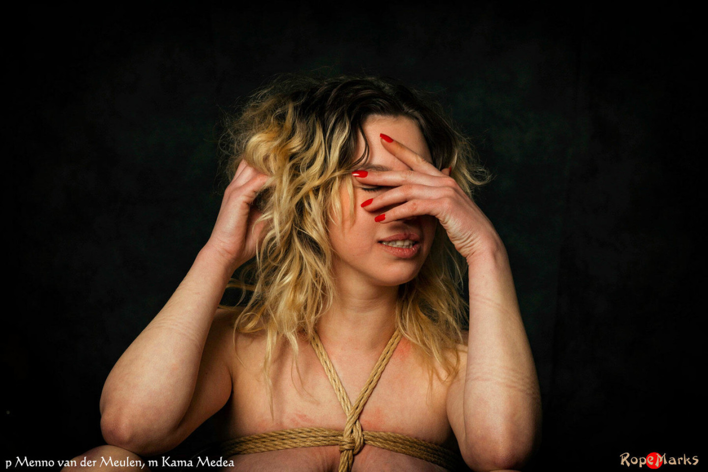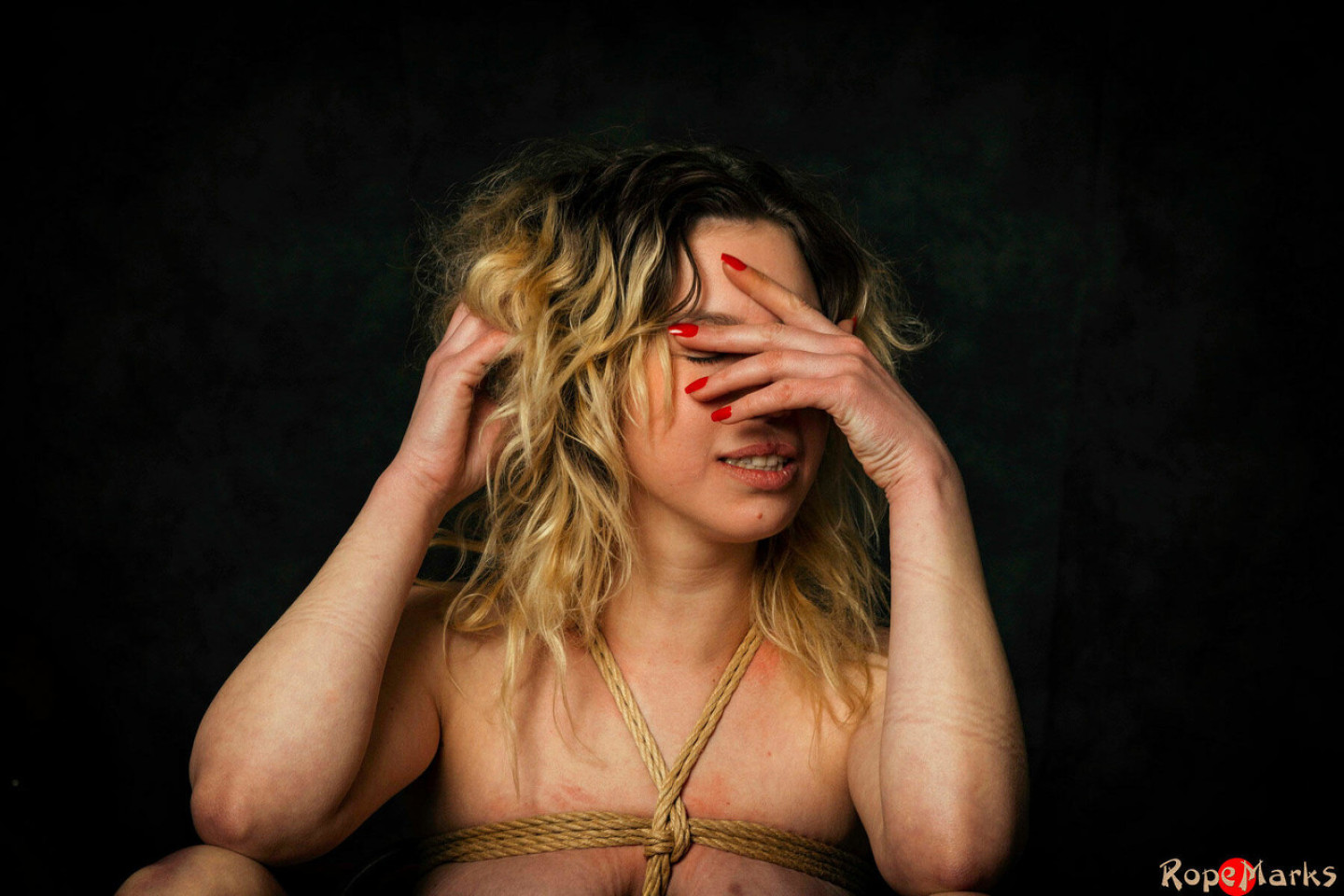Restrained blonde Kama Medea has clothespins attached to her pussy
