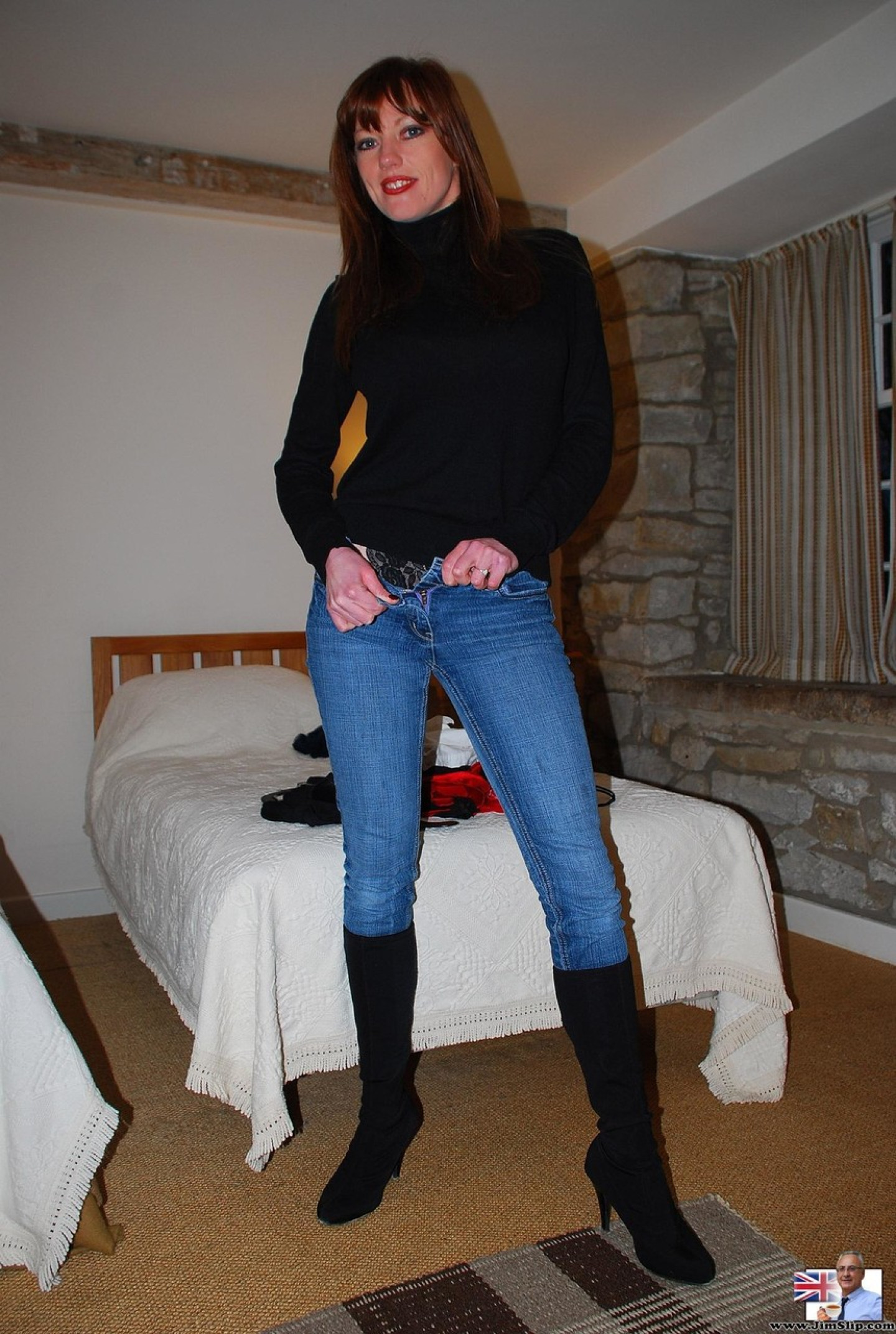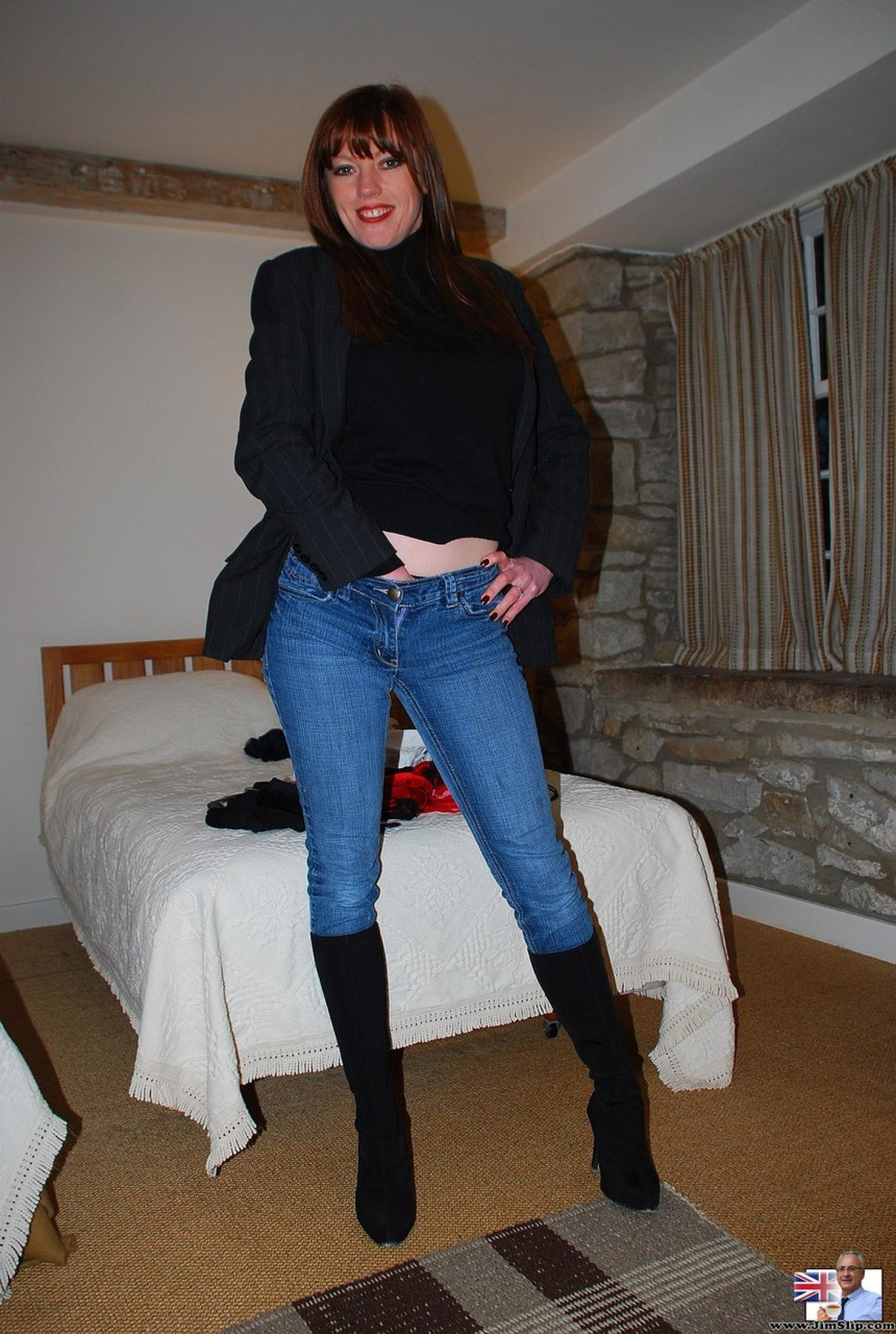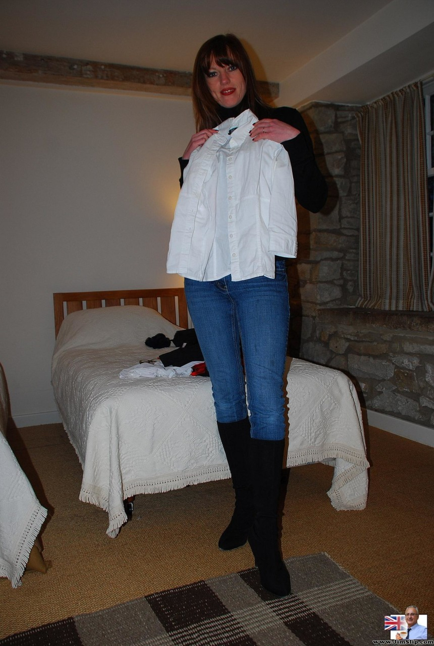 Sexy big titted MILF Holly Kiss peels to spread in black stockings on table