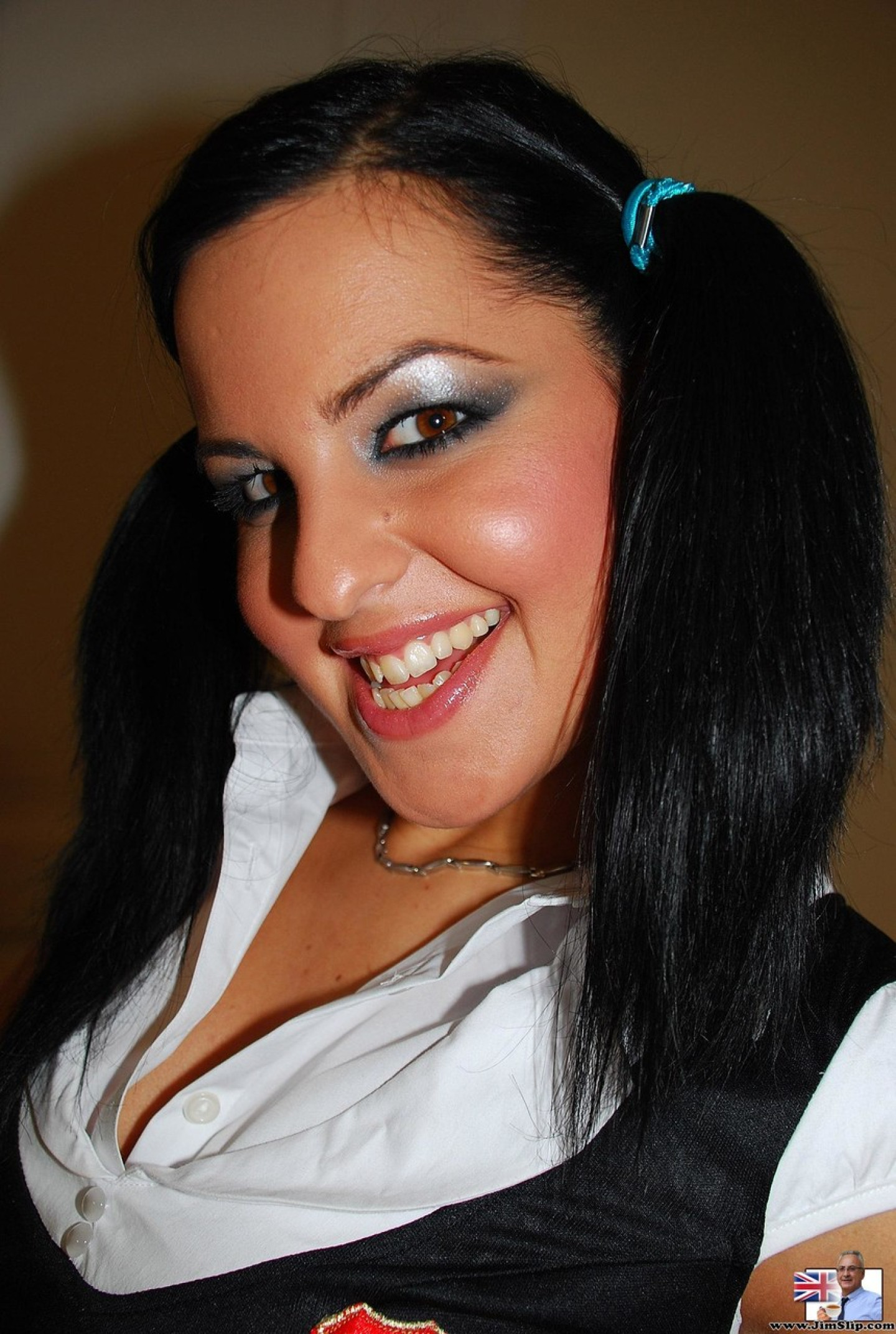 Brunette girl Lily Tiger puts her hair in pigtails before fucking an old man