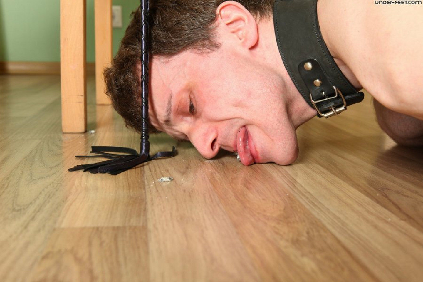 Bossy lady in shiny bikini and high heels tramples and humiliates her slave