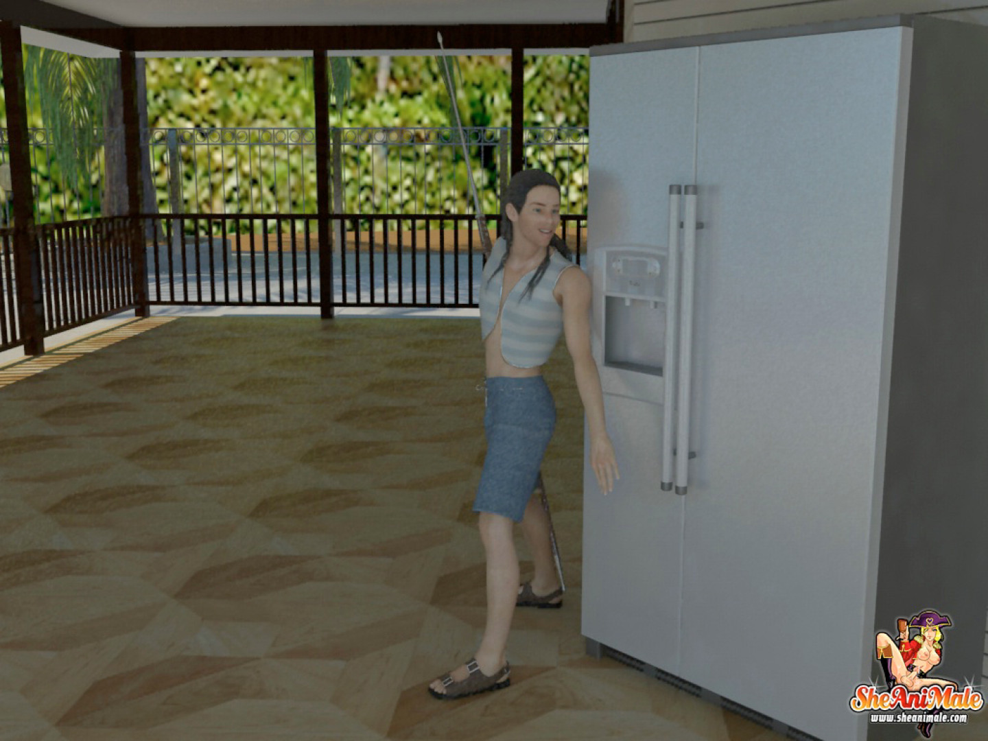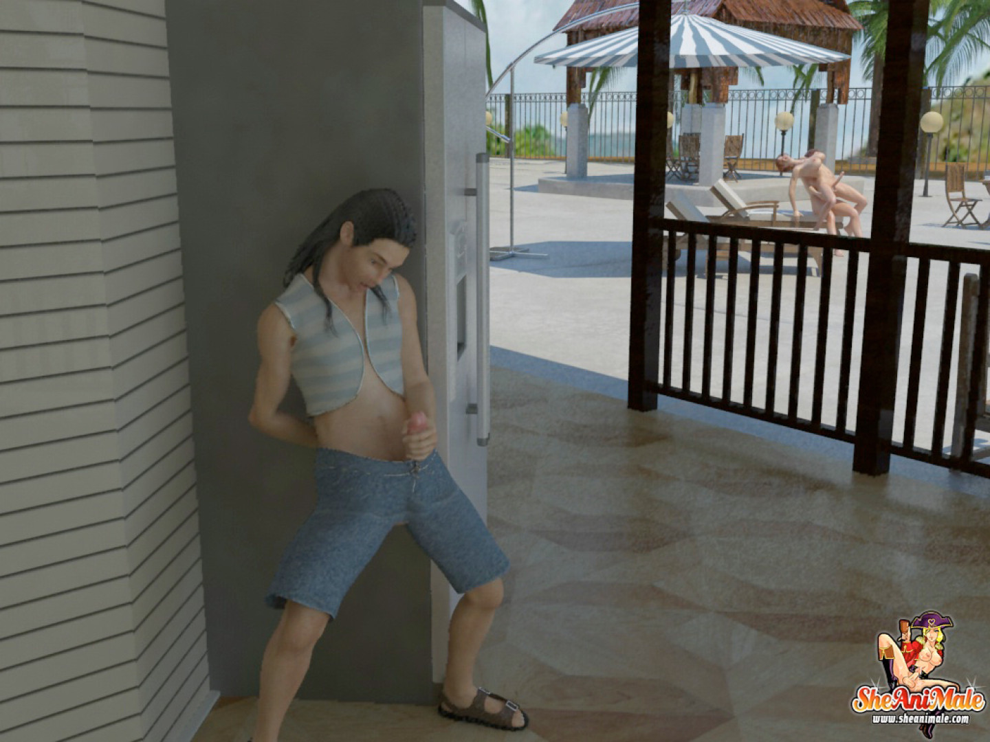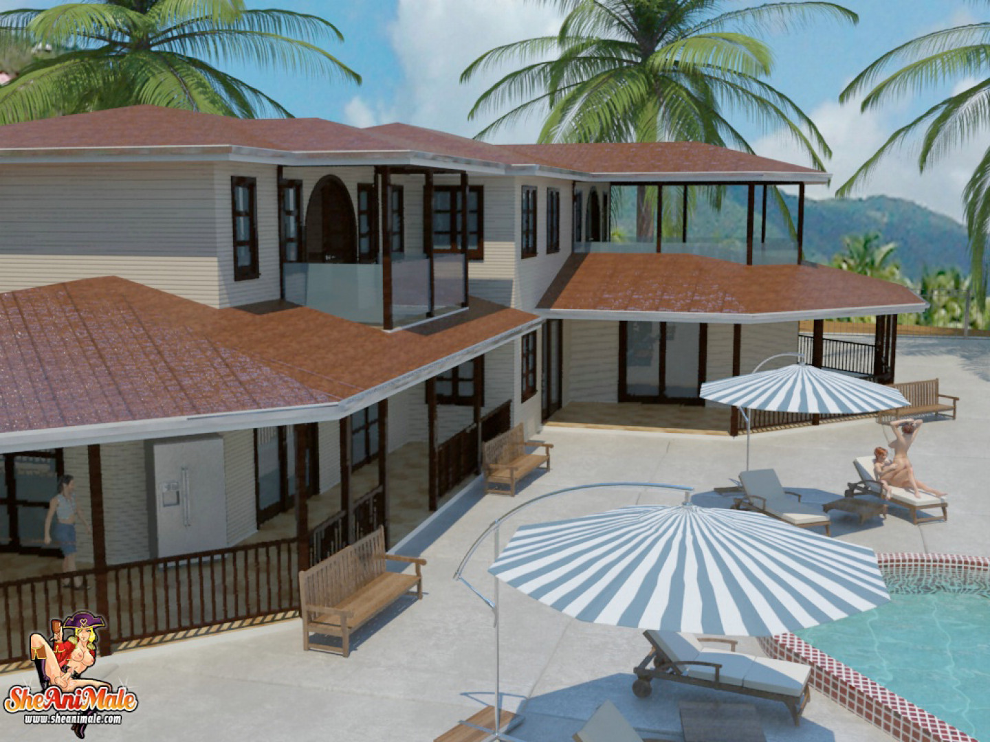 Animated shemales with huge breasts fuck each other poolside on a sunny day